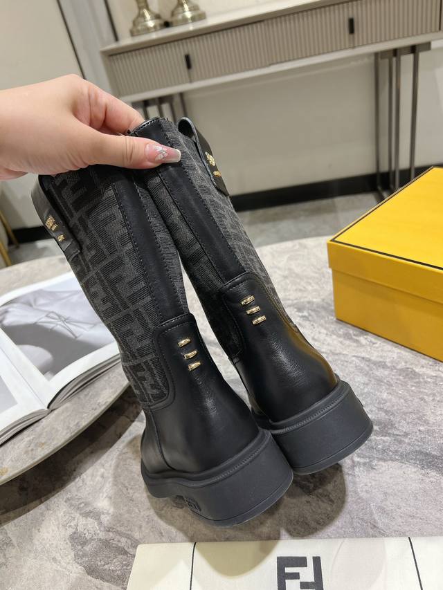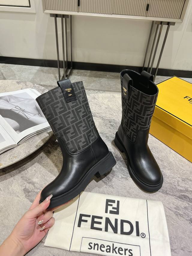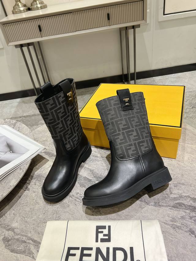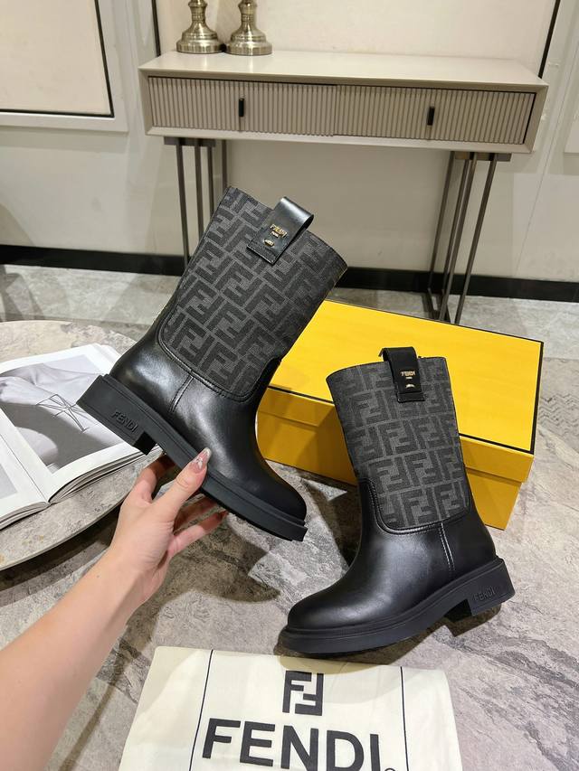 Fendi's new autumn/winter mid-calf boots with floral prints are so comfortable! They're incredibly flattering, and paired with a floral print knit, they're incredibly stylish. Paired with a short bomber jacket, the zipperless design makes them even more stylish. They're truly retro! These are the flat mid-calf boots I've been looking for! The silhouette evokes a British flair with a Roman flair! They strike a perfect balance between effortlessness and elegance. Material: Genuine leather, embossed fabric, leather lining, and original outsole. Sizes: 35-39, 40. Made to order, no returns or exchanges.