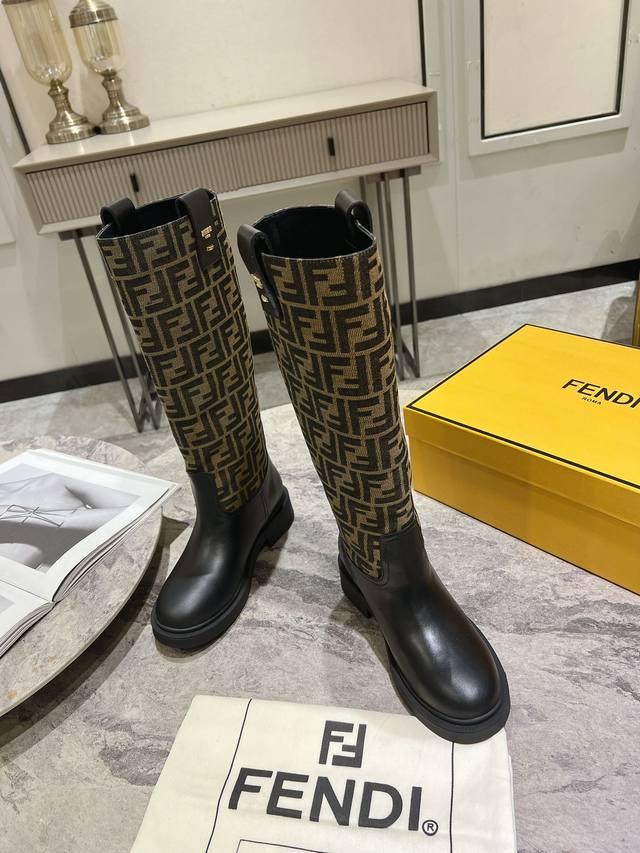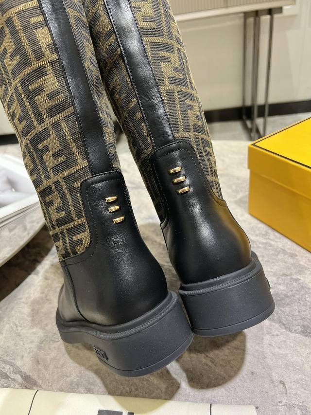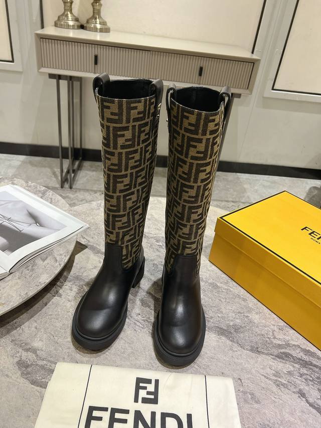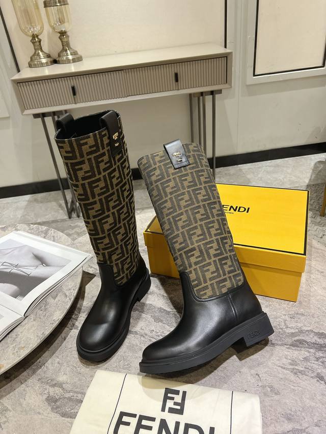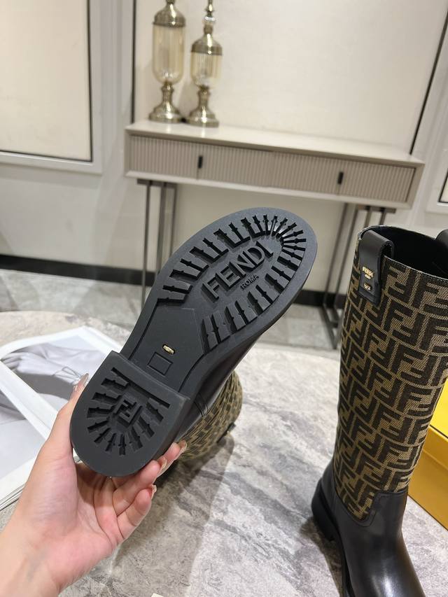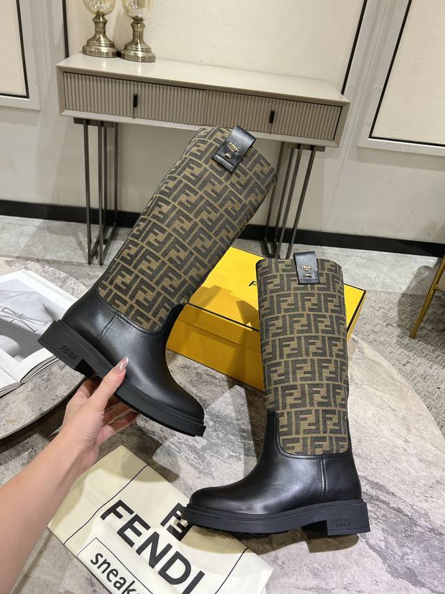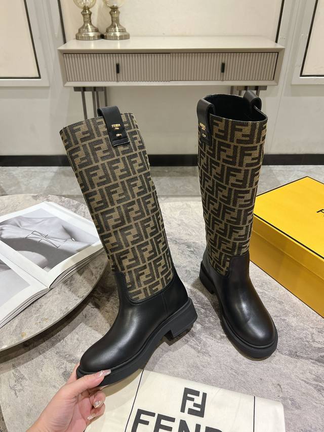 Fendi's new autumn/winter tall boots with floral prints are so comfortable. They're incredibly flattering, and paired with a floral print knit, they're incredibly stylish. Paired with a short bomber jacket, the zipperless design makes them even more stylish. They're truly retro! These are the flat-soled high boots I've been looking for! The silhouette evokes a British flair with a Roman flair, striking a balance between effortlessness and elegance. Material: Genuine leather, embossed fabric, leather lining, and original outsole. Sizes: 35-39, 40. Made to order, no returns or exchanges.