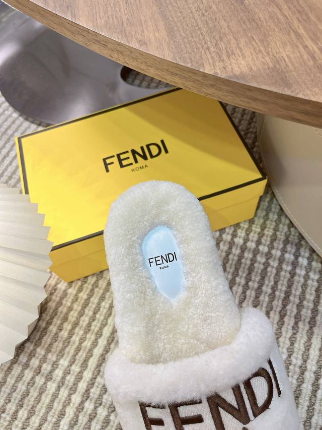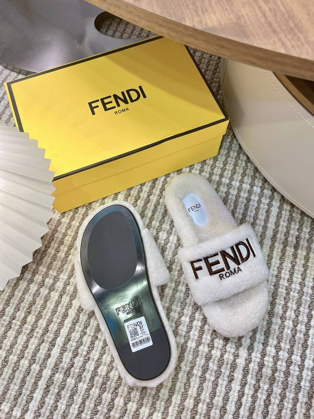 G021 Top-tier version Fendi wool slippers, a key product from the runway show. New arrival! Inspired by the table-leg design, these slippers are a modified version of the main footwear from this year's runway show. As everyone knows, these slippers are always designed with a high-end feel, sophisticated, versatile, and timeless. They keep up with the latest fashion trends. Material: Original wool. Lining: Wool. Outsole: Original molded sole. Size: #35-41. Size 41 is custom-made, no returns or exchanges.
