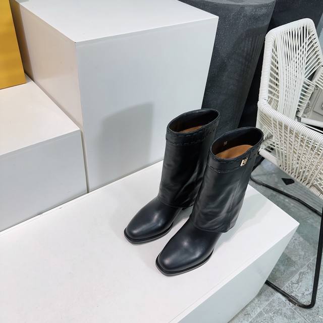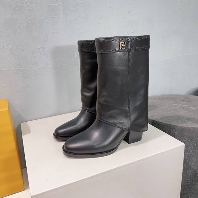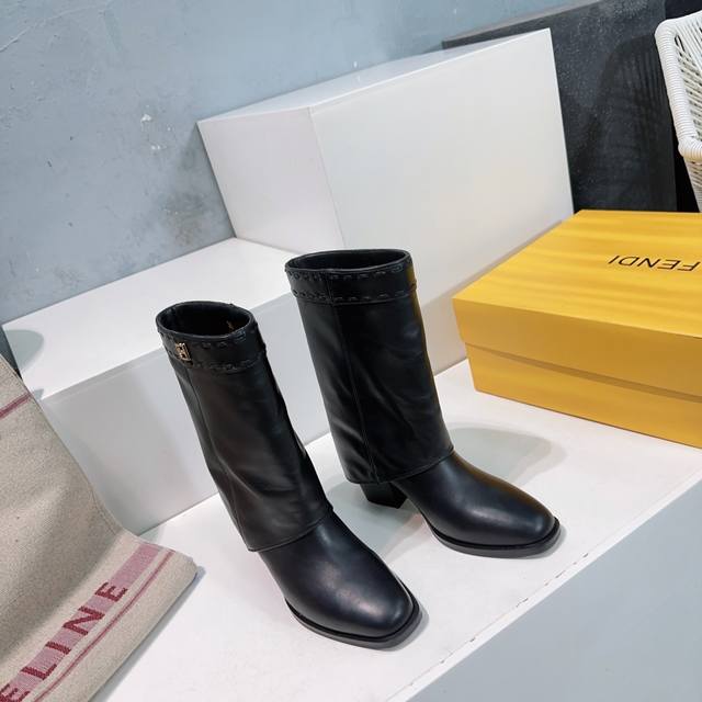 High-quality factory short! High! Top quality Fendi 25Ss Autumn/Winter runway main new chunky heel trouser-leg boots, short boots, and long boots! A super sexy and creative footwear series! Noble and charming trouser-leg craftsmanship long boots, elegant temperament, slimming foot and leg craftsmanship, both complex and sexy. Very wintery, both sexy and fashionable. Presenting a refined and fashionable minimalist style, combining sexiness, nobility, high-end, and grandeur!