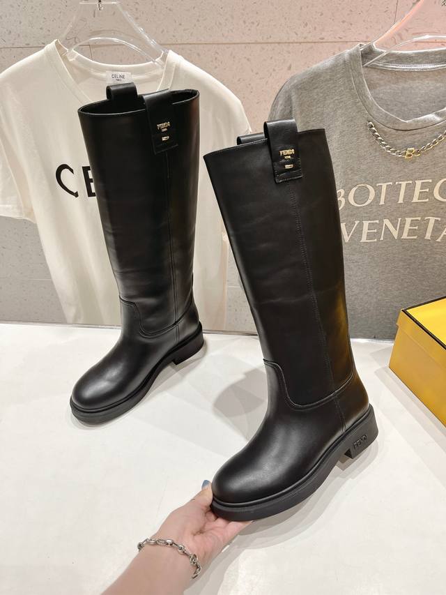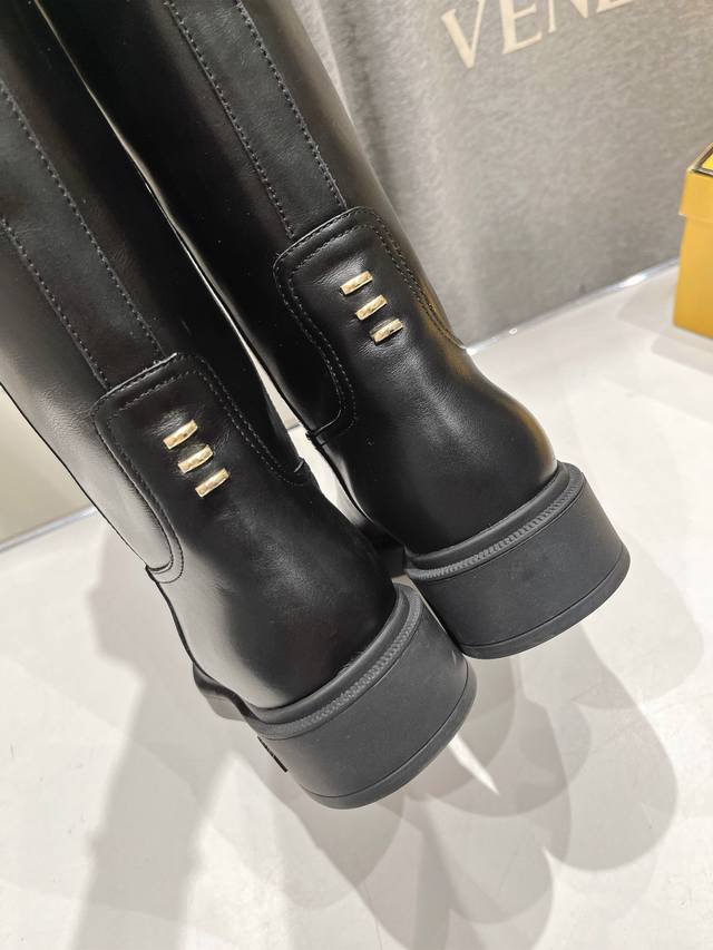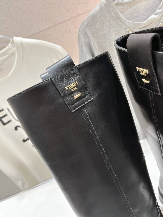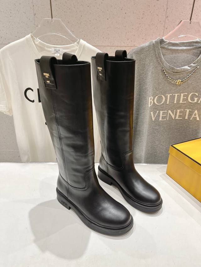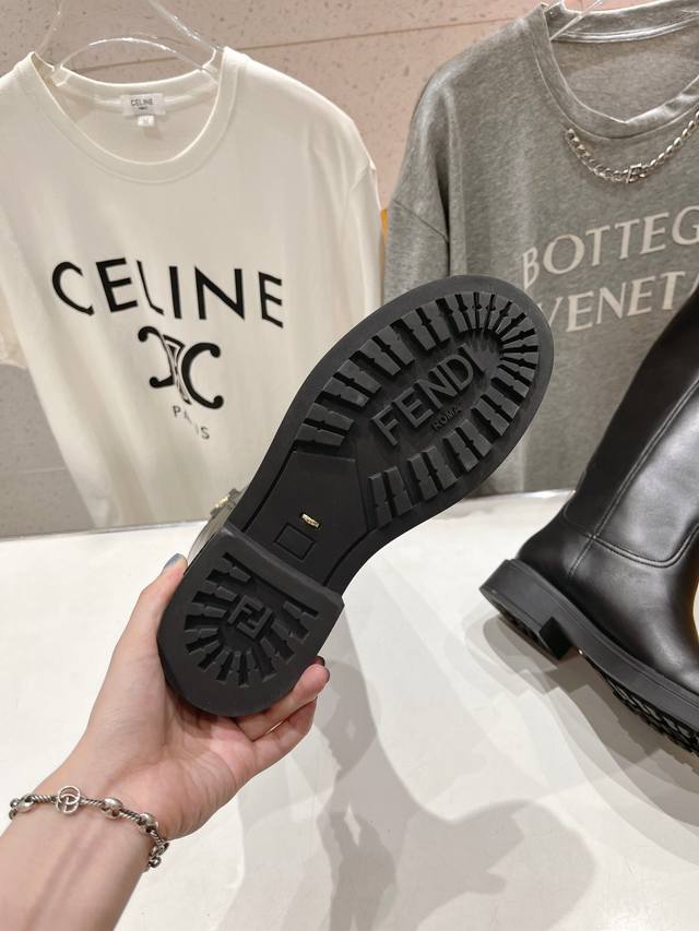 High-quality factory-made Fendi F029 2025 Autumn/Winter New Long Boots, Straight Boots, High Boots. Fendi has released another beautiful boot ! Made of top-grain cowhide with the classic Fendi monogram, full edge finishing on the cowhide, and a stylish and avant-garde high-frequency embossed motorcycle design on the back. Very comfortable to wear, with a durable sheepskin lining and a 3.5cm thick outsole. The original design is excellent and makes your feet look incredibly slim! A must-have item for winter! Sizes: 35-41, 40 and 41 are custom-made and non-refundable.