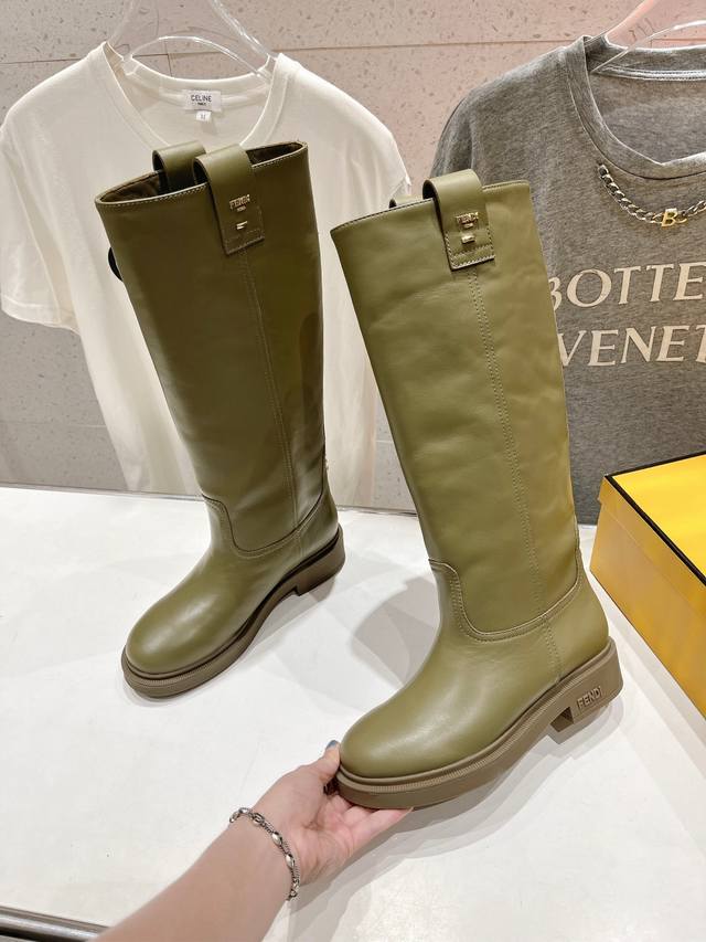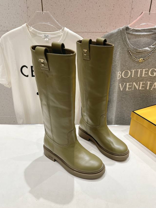 High-quality factory-made Fendi F029 2025 Autumn/Winter New Long Boots, Straight Boots, High Boots. Fendi has released another beautiful boot! Made of top-grain cowhide with the classic Fendi monogram, full edge finishing on the cowhide, and a stylish and avant-garde high-frequency embossed motorcycle design on the back. Very comfortable to wear, with a durable sheepskin lining and a 3.5cm thick outsole. The original design is excellent and makes your feet look incredibly slim! A must-have item for winter! Sizes: 35-41, 40 and 41 are custom-made and non-refundable.