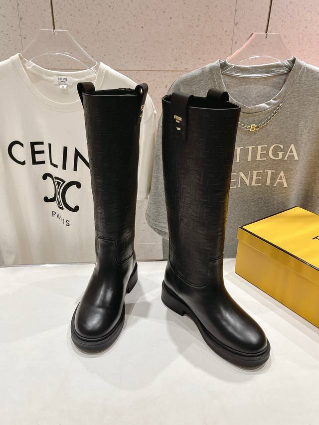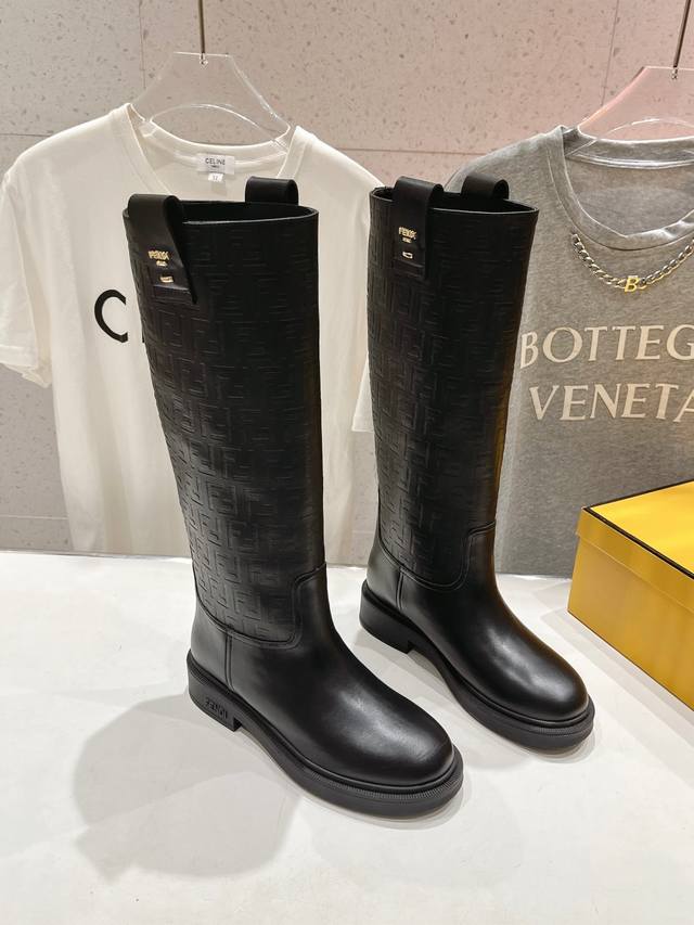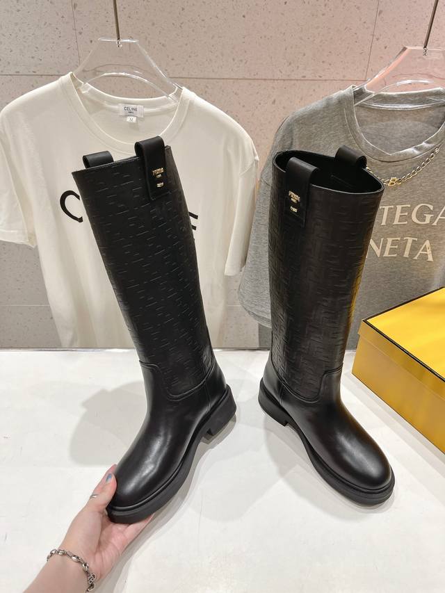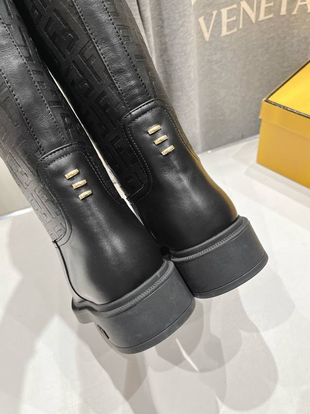 High-quality factory-made Fendi F029 2025 Autumn/Winter New Long Boots, Straight Boots, High Boots. Fendi has released another beautiful boot! Made of top-grain cowhide with the classic Fendi monogram, full edge finishing on the cowhide, and a stylish and avant-garde high-frequency embossed motorcycle design on the back. Very comfortable to wear, with a durable sheepskin lining and a 3.5cm thick outsole. The original design is excellent and makes your feet look incredibly slim! A must-have item for winter! Sizes: 35-41, 40 and 41 are custom-made and non-refundable.