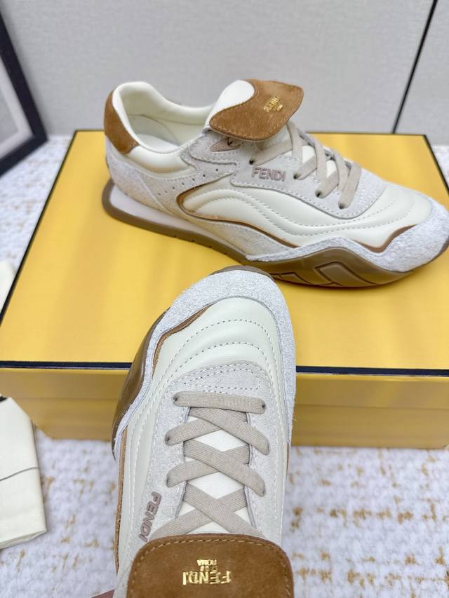 High-quality women's and men's shoes DDD Fendi New Arrival Express -- Women's German Training Shoes October New Arrival! These exquisite women's German training shoes are a must-have! DDD Apricot-colored embossed box bag with gold buckle and tassel details is both luxurious and playful. DDD And these German training shoes, with their horsehair tongue and retro silhouette, are incredibly stylish. The complete outfit exudes a refined and relaxed vibe