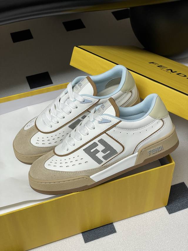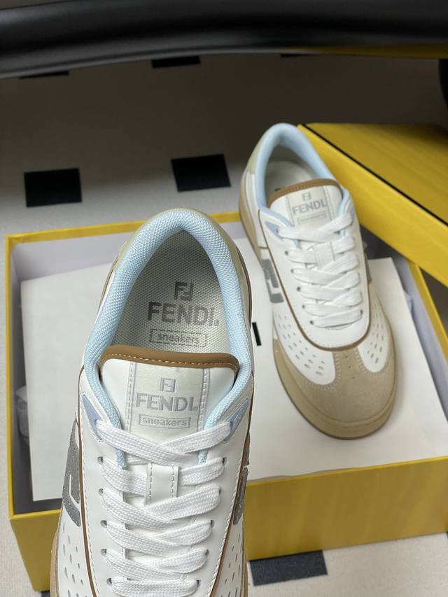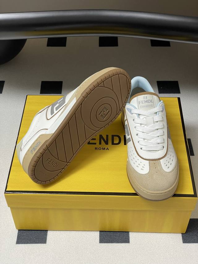 Original purchase, development and production. Designer Kim Jones's first sports shoe, Fendi Match, is similar to the LV brand Trainer basketball sneakers in shoe shape, with the addition of Ff retro design. The upper is made of suede and leather stitching, with a raised double F Logo on the side. The inner lining is terry fleece. It is super soft, light and comfortable to wear with a sweatshirt, and it is full of youthfulness.