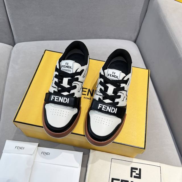 Fendi 2025 Chinese New Year looking for couple's sneakers, casual athletic shoes Fd Match original purchase, 1:1 replica. The Fendi Match, the first athletic shoe designed by designer Kim Jones, and the Trainer basketball shoe from Louis Vuitton, injecting fresh blood with Ff retro design, super good-looking and versatile. The upper is made of suede and leather splicing, with a raised double F logo on the side. The lining is made of terry cloth, super soft, lightweight and comfortable on the foot. Pair with a sweatshirt. Recommended to buy one pair per hand. Sizes: Women's 35-40, Men's 39-44