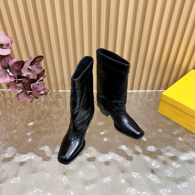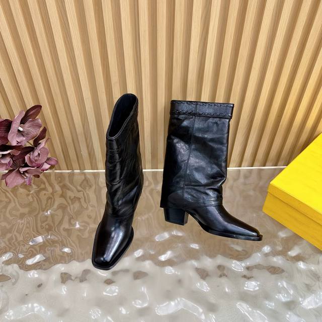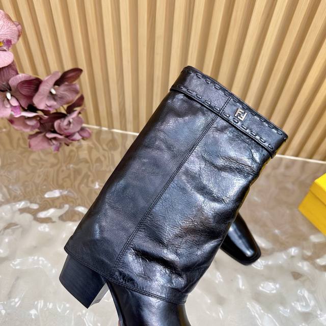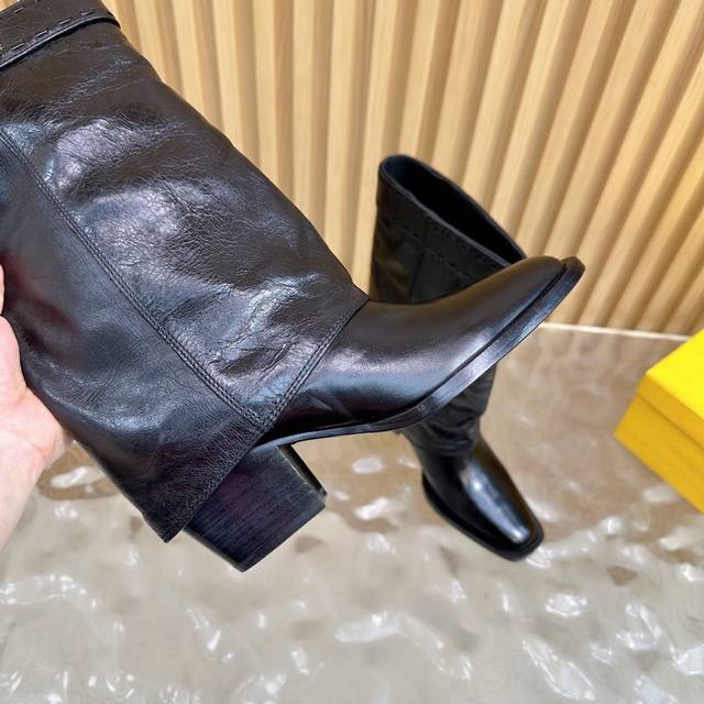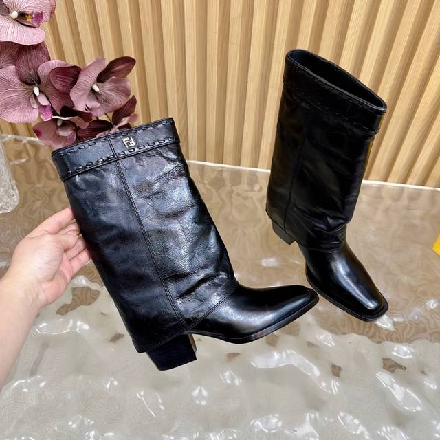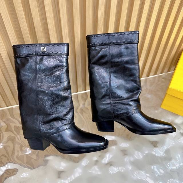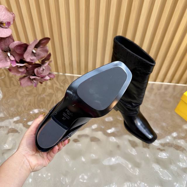 25Ss Fendi wood-grain block-heeled trouser boots with square toes. Fendi: Recognize the packaging for the high-end versions and avoid the low-end.