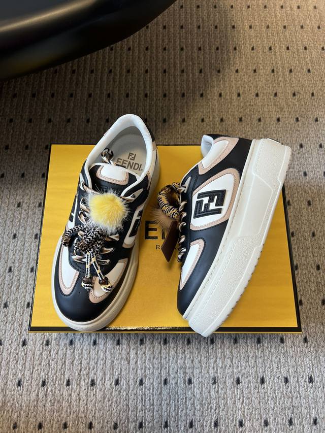 Top Quality DDD Fend*25Ss Platform Shoes for Sports and Casual Wear DDD The shoe design features a platform sole, which adds height and makes legs appear longer. The loose lines of the shoe body give it a relaxed, trendy "bread shoe" feel. It comes with detachable decorations, allowing for versatile styling options, switching between sweet, cool, and gentle looks. Made with leather and denim patchwork, it's durable and has a sturdy texture. DDD It retains the sophistication of luxury brands while adding a "sweet girl" element with plush and bow details, making it suitable for everyday casual wear and light commuting. It looks great with skirts and jeans. DDD Upper: Cowhide Suede DDD Lining: Sheepskin DDD Outsole: Original Mold Outsole DDD Height Increase: 5cm DDD Size: 35-41, Size 40 is custom-made and non-refundable DDD