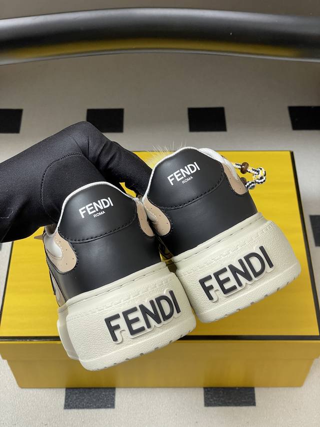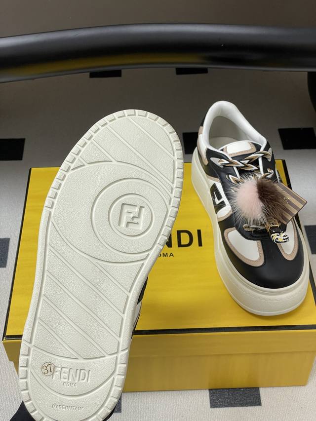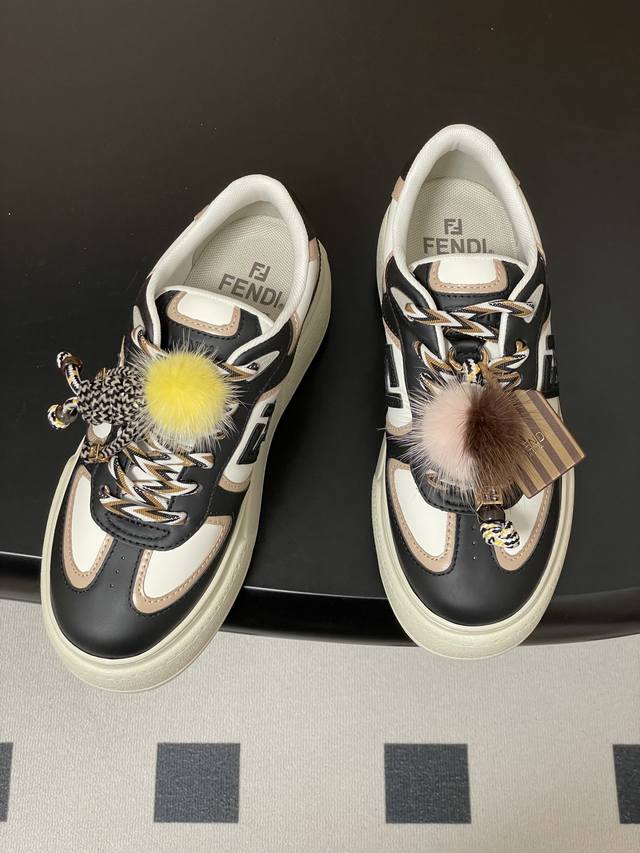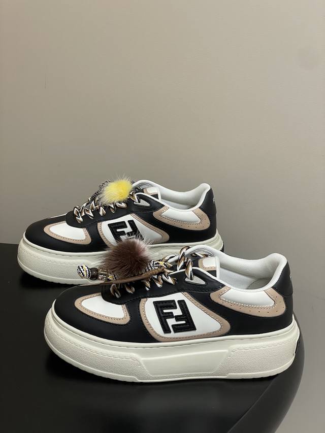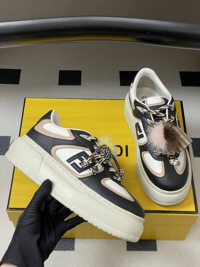 Top Quality DDD Fendi Match Series 25 Latest Colorway Charm Platform Sneakers Lace-up Casual Sneakers DDD Fendi Match Lace-up Sneakers. Light pink leather upper with white and ochre brown details. Sides adorned with contrasting leather Ff appliqu