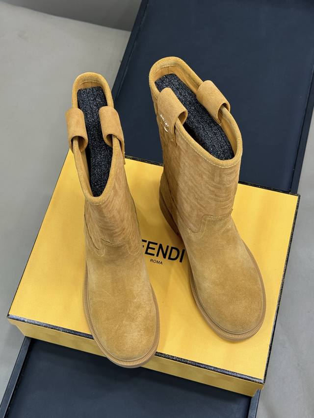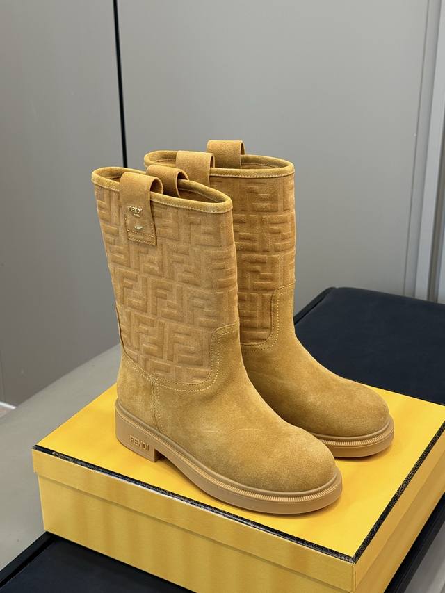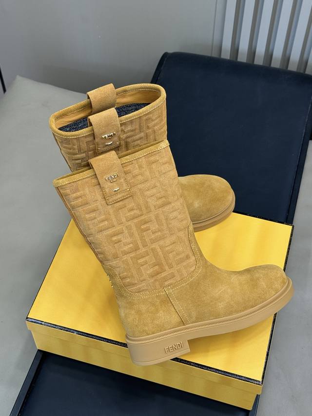 Top Quality Fendi SS25 Autumn/Winter New Knee-Length Boots. A gentle, milky brown shade that gives a retro vibe, perfectly elegant. Calling them "fashionable combat boots" is no exaggeration. They look powerful with coats and add a touch of femininity with skirts. Having them in your autumn/winter wardrobe will instantly banish outfit anxiety! The suede texture is amazing! It's a fine cowhide material that feels soft and comfortable against the skin. I'm already recommending these; I predict they'll be sold out every autumn/winter! Sizes 35-41.