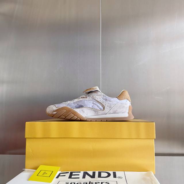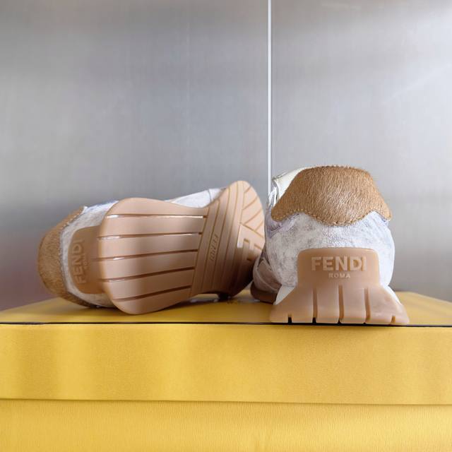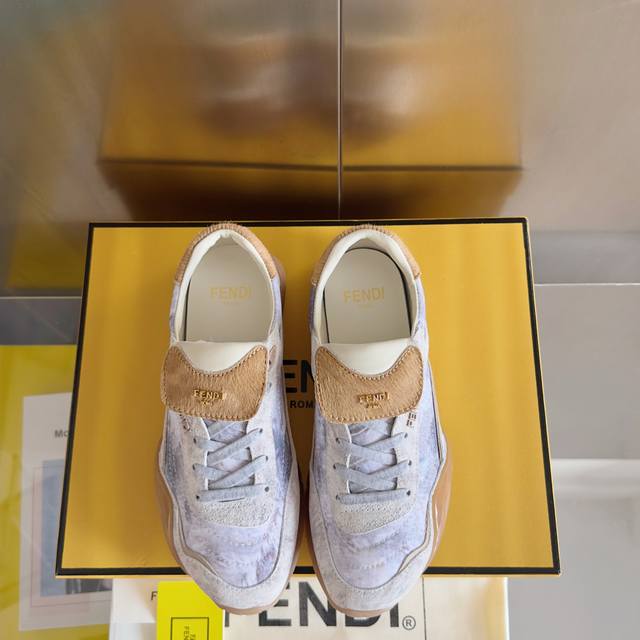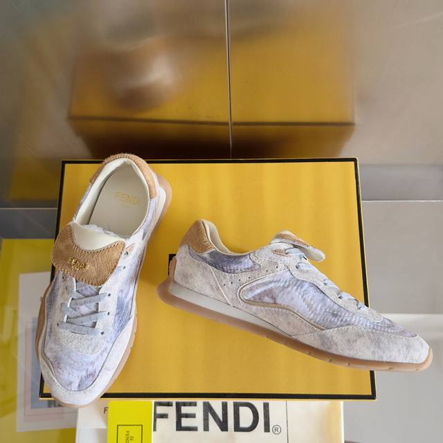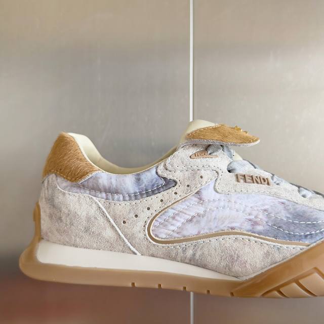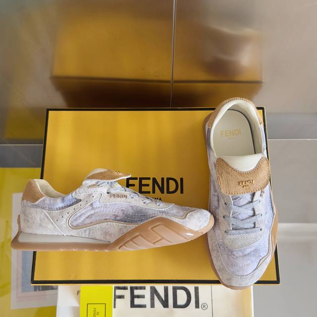Fendi Wave Pulse Series Inkjet Flip-Top Pony Hair Couple Casual Sneakers