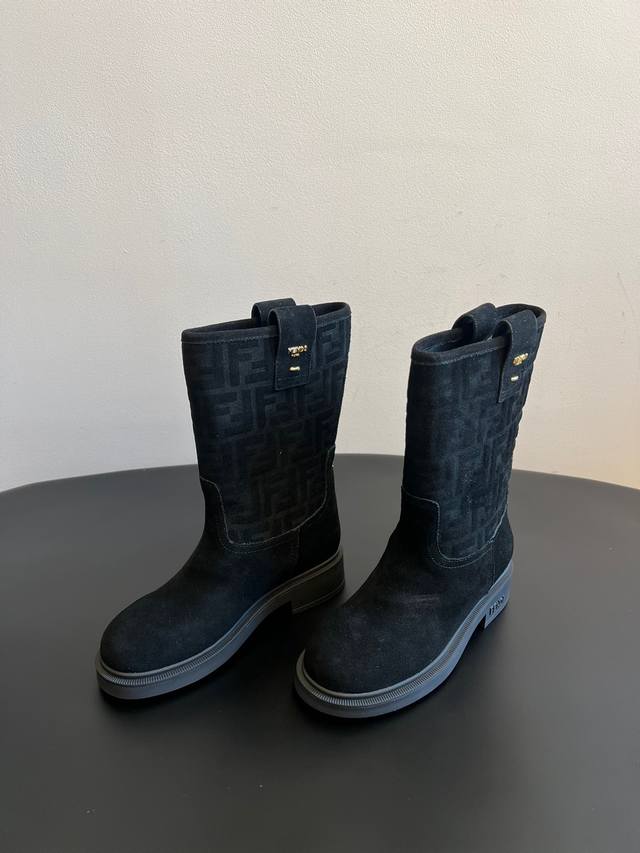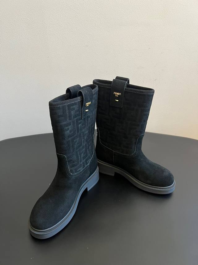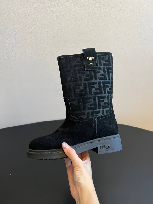 Top-tier Fendi Fall/Winter runway main collection boots. Highly recommended by celebrities and influencers, these are the latest runway boots. The simple design is highly recognizable, with subtle logo details and monogram accents for a luxurious feel. Upper: Imported high-gloss cowhide leather. Lining: Genuine high-gloss cowhide leather. Exclusive private mold, 3.5cm outsole height. Original full packaging. Size: #35-41, 40.41. Custom orders are non-refundable and non-exchangeable.