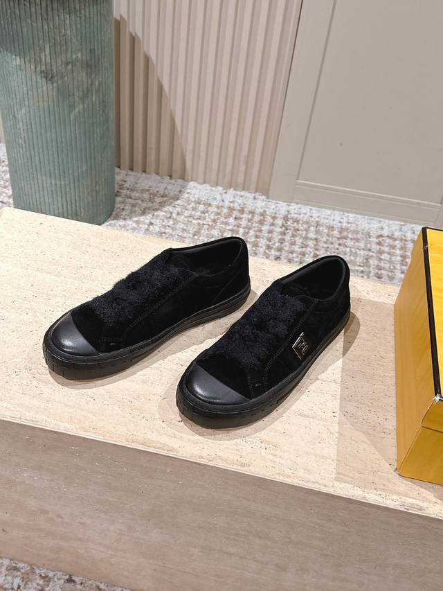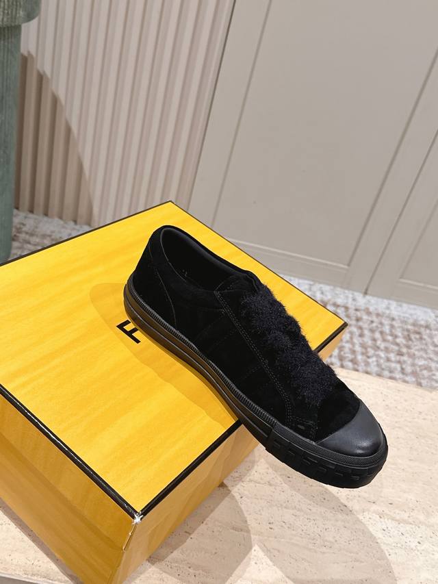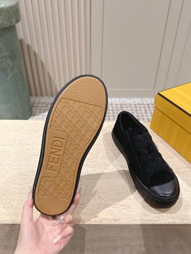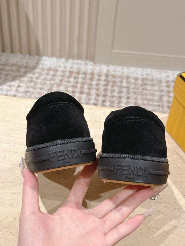 Top-tier version: Febdi's new low-top sneakers with a rubber sole. The suede lambskin lining is embroidered with stitched Ff pattern stitching. The white sole features a contrasting color design, embossed texture, an overlaid Ff pattern on the toe, and the Fendi Roma logo on the heel. Size: 35-45 (Women's 40, Men's 45, Custom DDD)