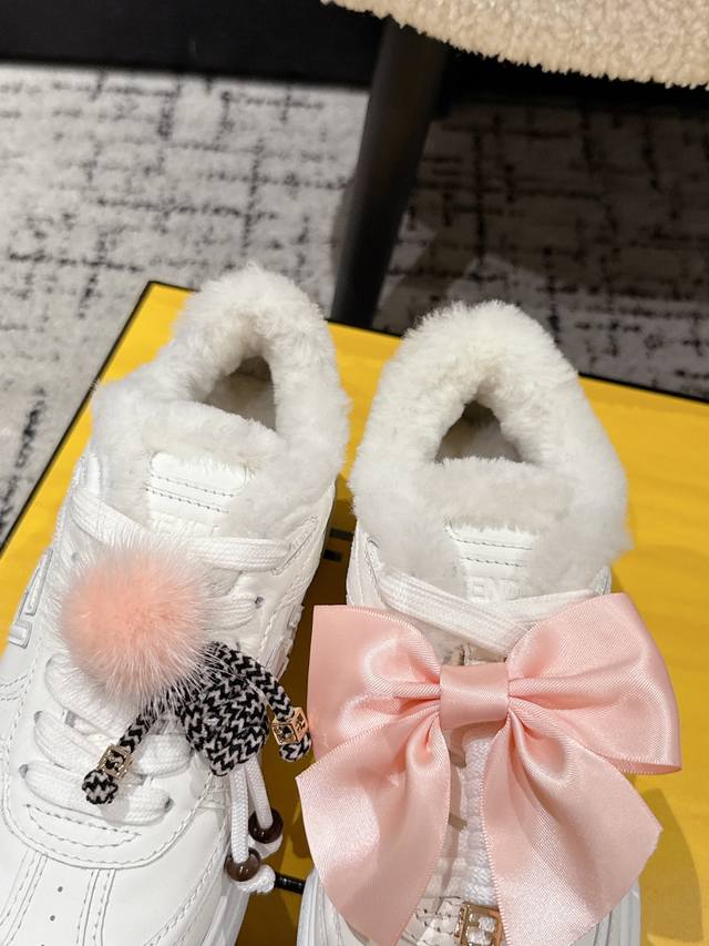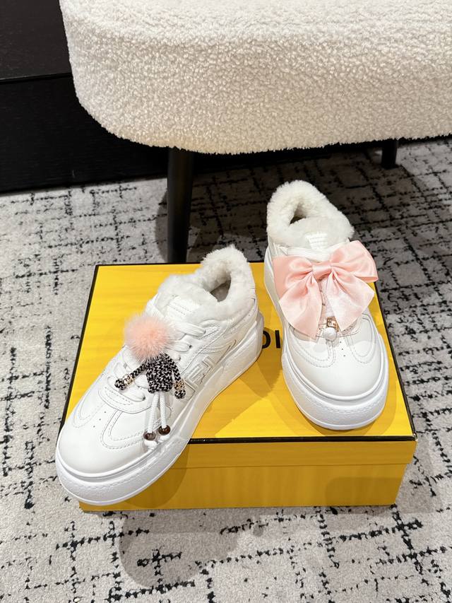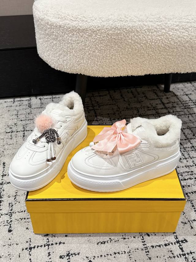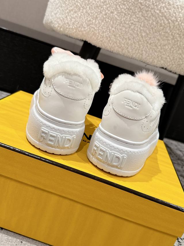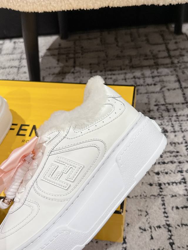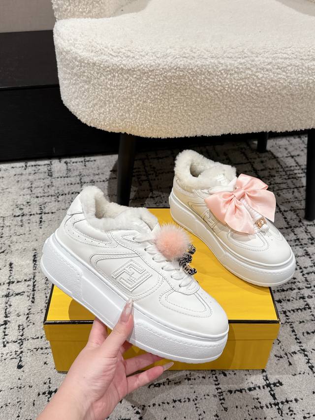 Top-tier version DDD Fendi 25 Match platform wool-lined biscuit shoes, bread shoes, thick-soled round-toe lace-up sneakers DDD Original purchase, developed and manufactured. Designer Kim Jones' first sneaker, the Fendi Match, has a similar silhouette to the Louis Vuitton Trainer basketball shoe, incorporating retro Ff design elements. The upper is a combination of suede and mesh, with a raised double F logo on the side. The lining is made of terry fleece, making it super soft, lightweight, and comfortable. Pairs well with a hoodie for a youthful look. DDD Material: Original custom imported top-grain cowhide and mesh DDD Lining: Imported custom genuine wool DDD Sole: Original molded ultra-lightweight foam material DDD Sole thickness: 5cm DDD Size: #Women's 35-40 40 custom-made, no returns or exchanges DDD