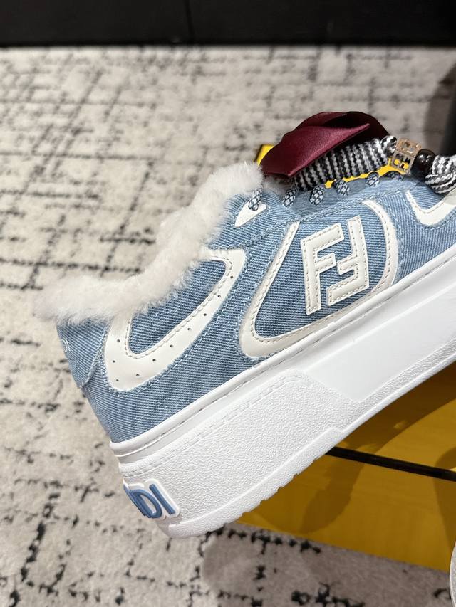 Top-tier version DDD Fendi 25 Match platform wool-lined biscuit shoes, bread shoes, thick-soled round-toe lace-up sneakers DDD Original purchase, developed and manufactured. Designer Kim Jones' first sneaker, the Fendi Match, has a similar silhouette to the Louis Vuitton Trainer basketball shoe, incorporating retro design elements. The upper uses a combination of suede and mesh, with a raised double F logo on the side. The lining is made of terry fleece, making it super soft, lightweight, and comfortable. Pairs well with a hoodie for a youthful look. DDD Material: Original custom imported top-grain cowhide and mesh DDD Lining: Imported custom genuine wool DDD Sole: Original molded ultra-lightweight foam material DDD Sole thickness: 5cm DDD Size: #Women's 35-40 40 custom-made, no returns or exchanges DDD