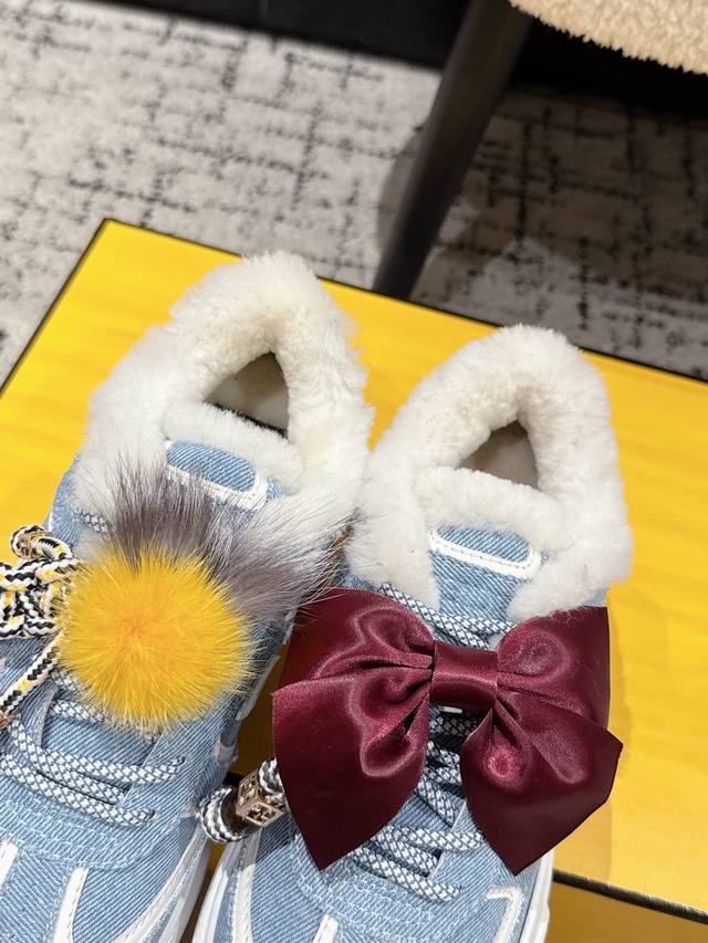 Top-tier version Fendi 25 Match platform wool-lined biscuit shoes, bread shoes,
