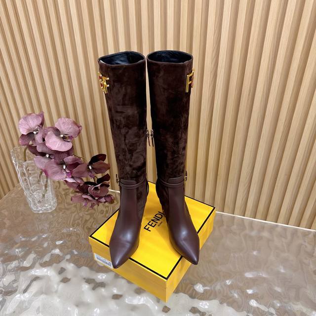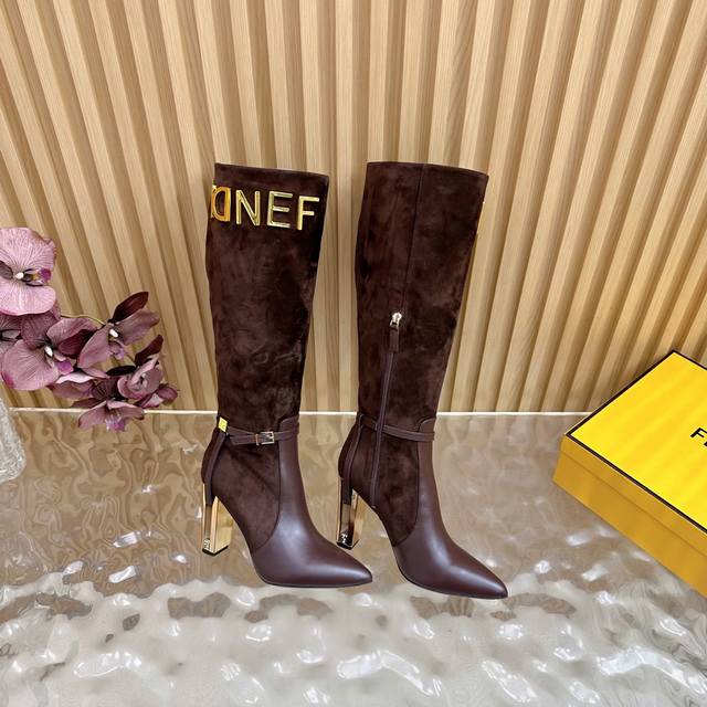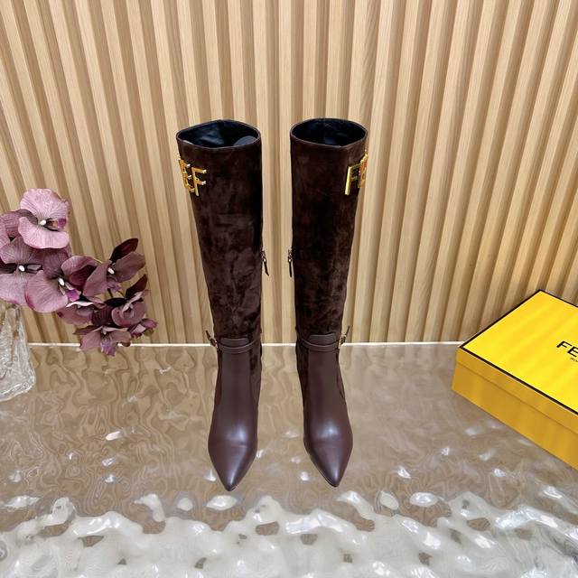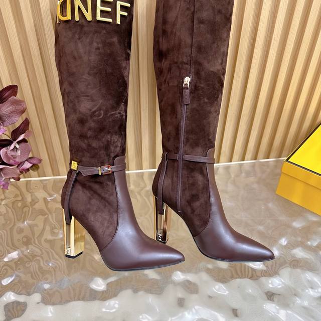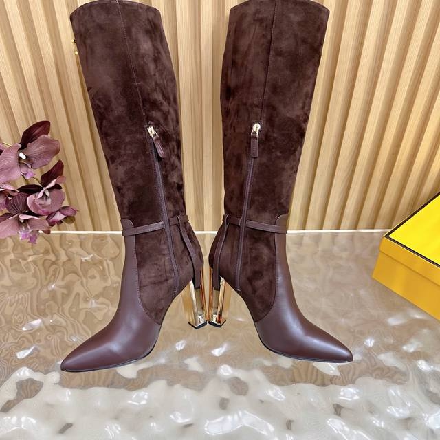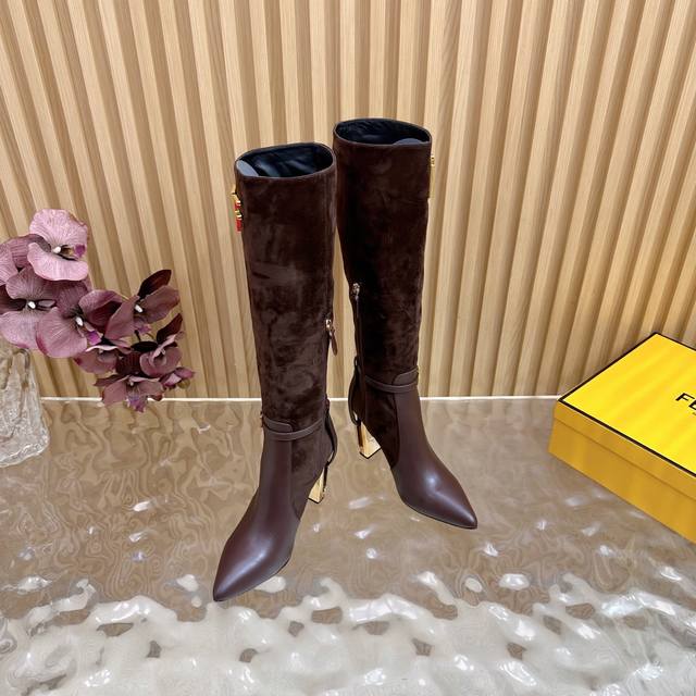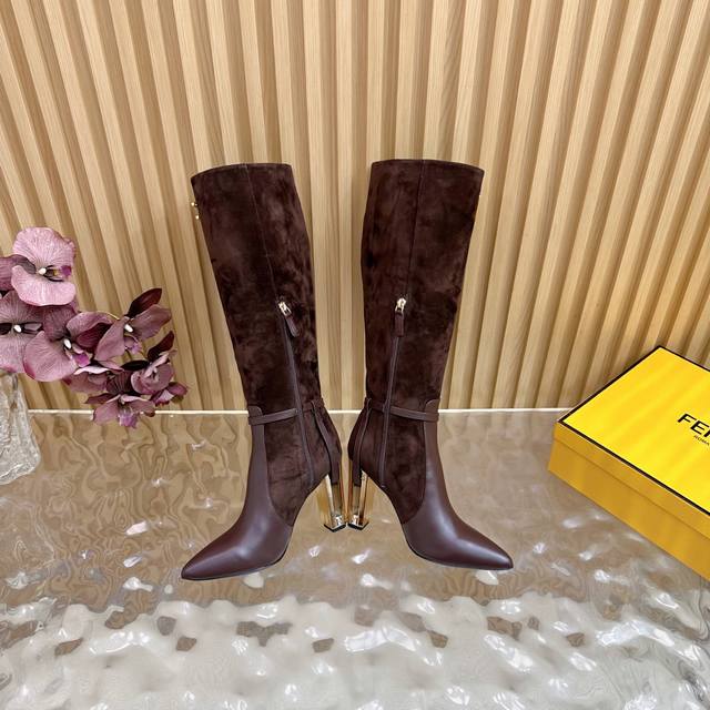 2025 Fendi New Arrival from the Boutique: Chunky Heel Boots with Cutouts in Two Fabrics - Super Hot! Exclusive molded cutout heel design is highly distinctive. Fendi has never disappointed us; these boots are sexy yet unique. Round toe, pointed toe.