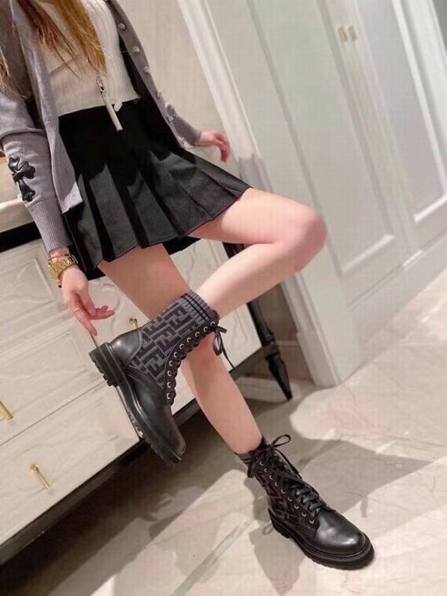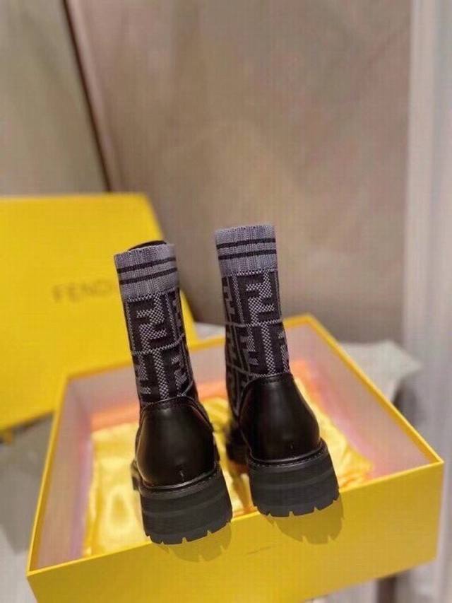 Factory direct price women's shoes and sportswear original single item. Classic Fendi Martin boots, sold out in stores. Various items are printed with the Ff logo. This year's new color logo is stylish and sophisticated. Celebrities like Ouyang Nana and Liu Wen have worn this classic style. Material: 1:1 replica knitted boot shaft. Upper: Top-grade custom matte first-grade cowhide. Same style as in stores. Outsole: Rubber foam sole, wear-resistant fleece welt. Super lightweight feel. Sizes: 35