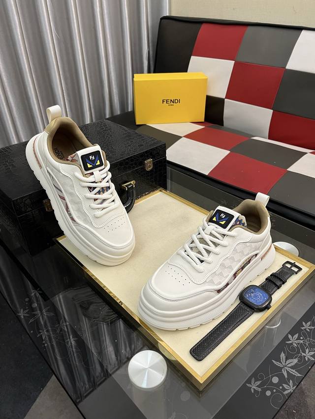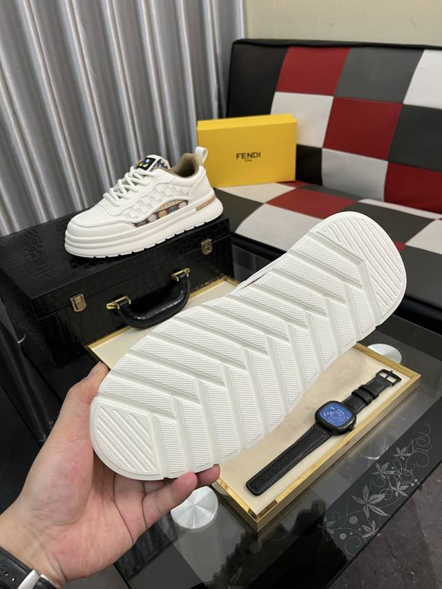 Factory Price: Fendi Original Quality. ~ Unique modern sneakers. A must-have for trendy men. Imported from Italy, this stylish brand features imported leather and a sheepskin lining that resists fading and rubbing. Sole: Exclusively supplied by the manufacturer, this French, casual design is snug and comfortable, with a premium, original quality. Just like the real thing, the photos are even better. Sizes: 38-442, available in