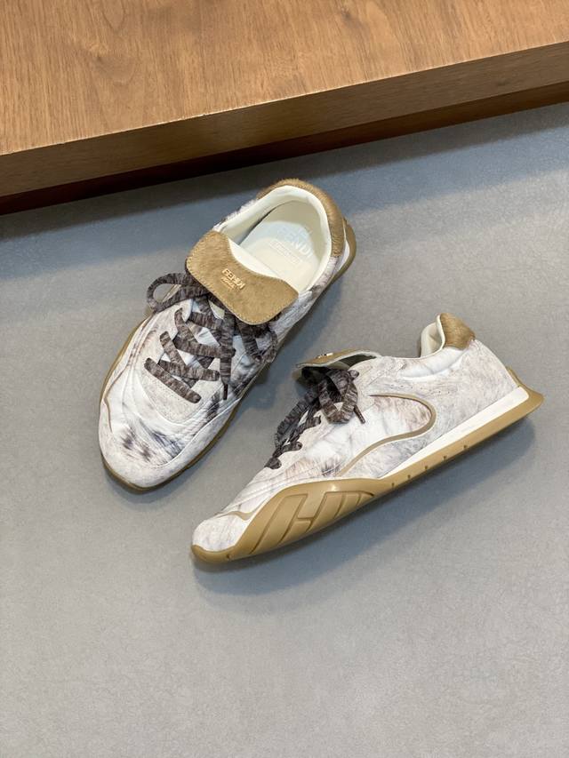 Fendi - High-end quality original single casual sports shoes - Upper: Imported horsehair leather, color-printed suede calfskin, color-printed brand totem fabric, tongue, body, brand metal logo - Lining: Water-dyed cowhide - Outsole: Ultra-lightweight TPU foam rubber; two-tone molded outsole - Super high quality control and exquisite workmanship: highlighting high-end luxury - Size: 39-44, 38, 45, custom orders available
