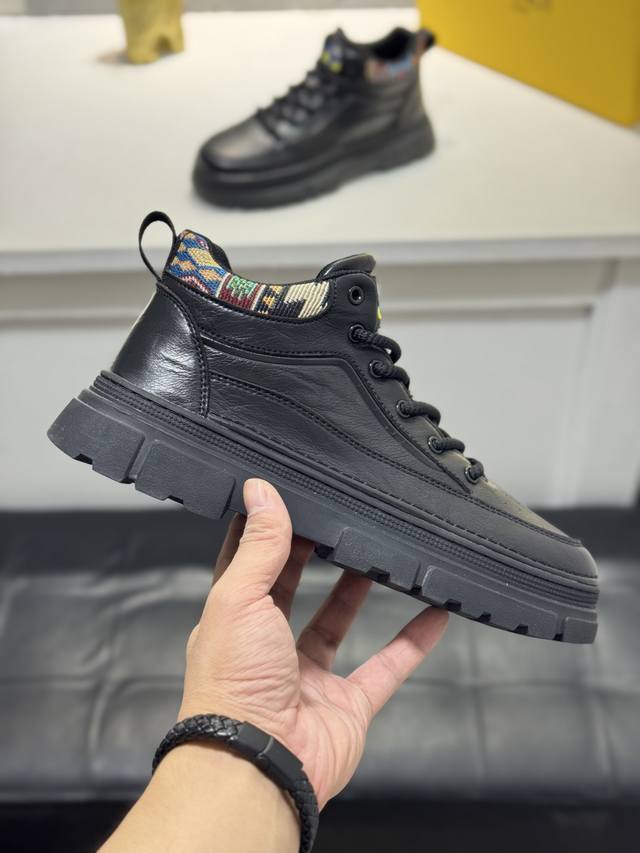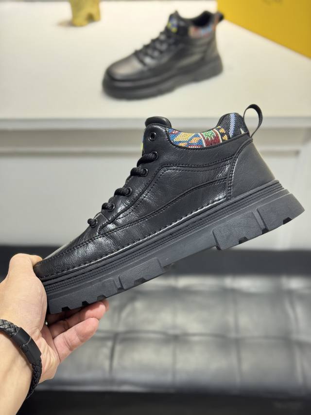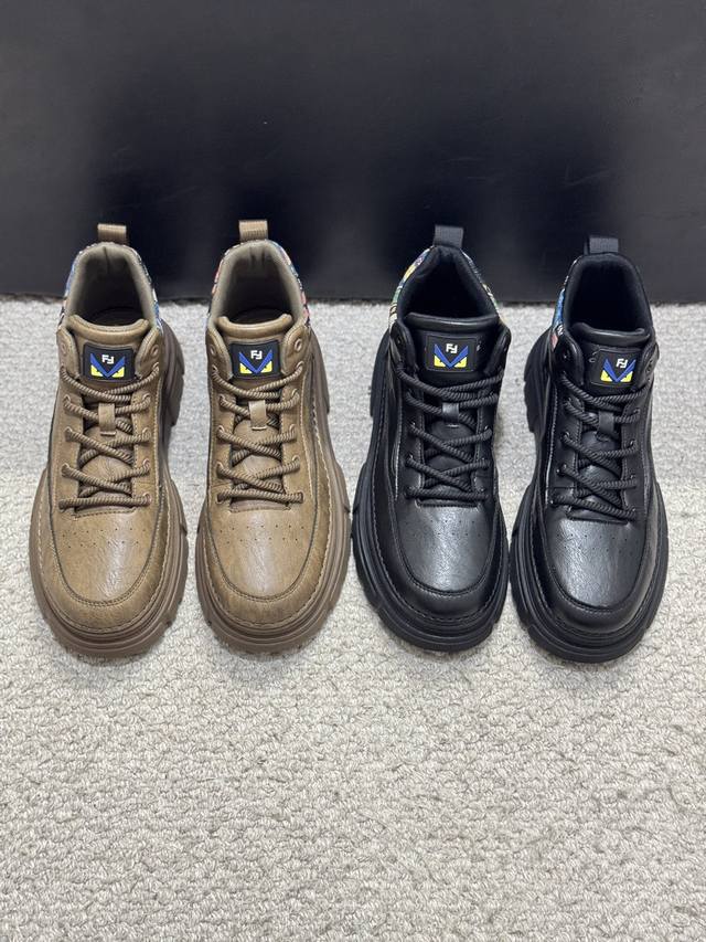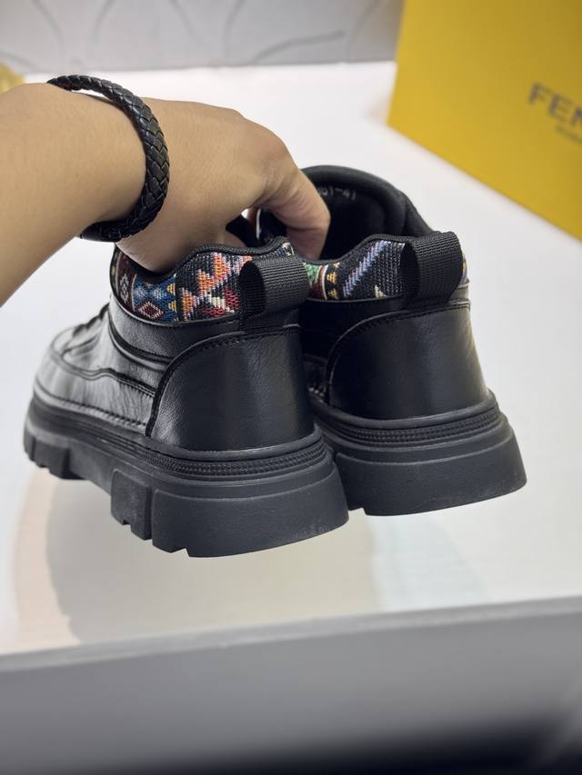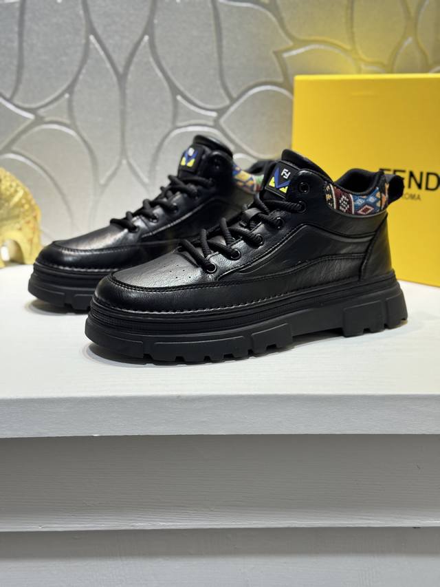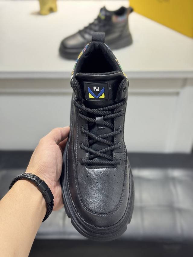 Fendi Men's Mid-Top Casual Shoes, featuring comfortable and slip-resistant construction, crafted from cowhide leather, combining innovation, functionality, and graphic details to embody trendy style. The high-elasticity rubber outsole offers superior elasticity and durability for enhanced comfort! Sizes: 38-44, 45 (custom sizes available).