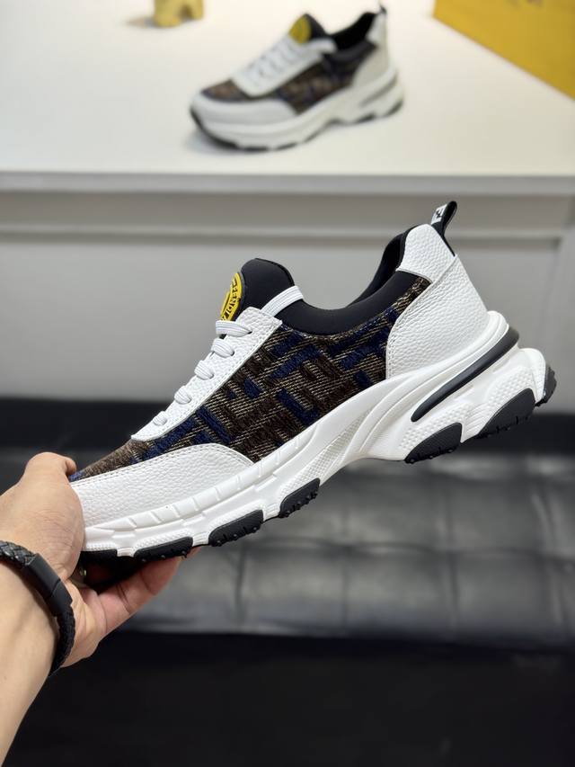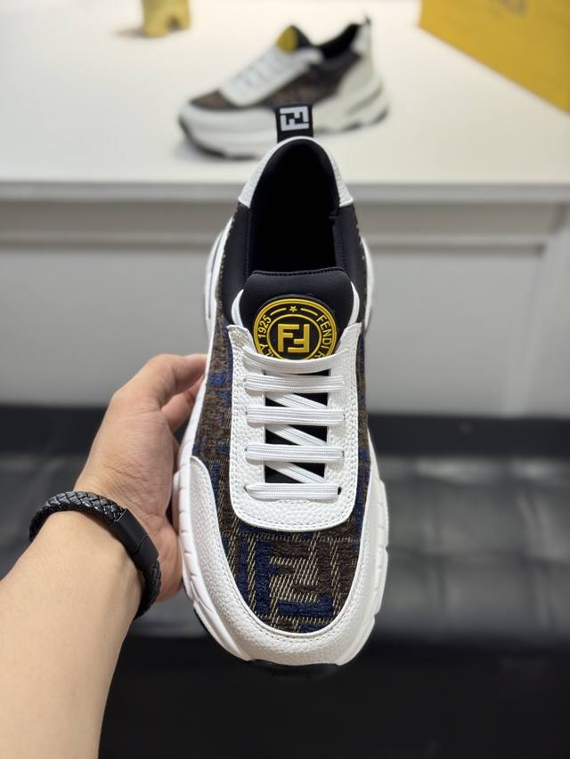 Fendi! Top-tier purchasing agent for men. New original configuration, imported Italian cowhide stitching original fabric sole: original factory special supply original sole, super comfortable, original factory follow-up goods of high quality, three colors optional, free to enter and exit the counter. Welcome to compare