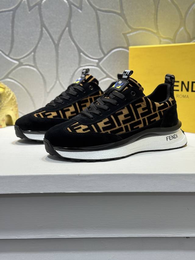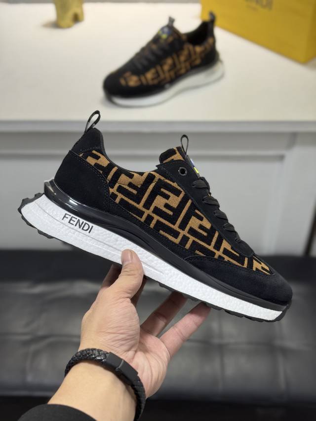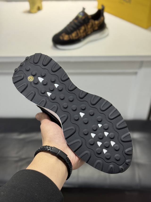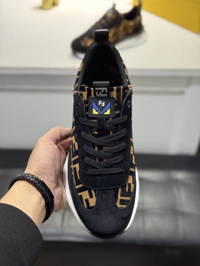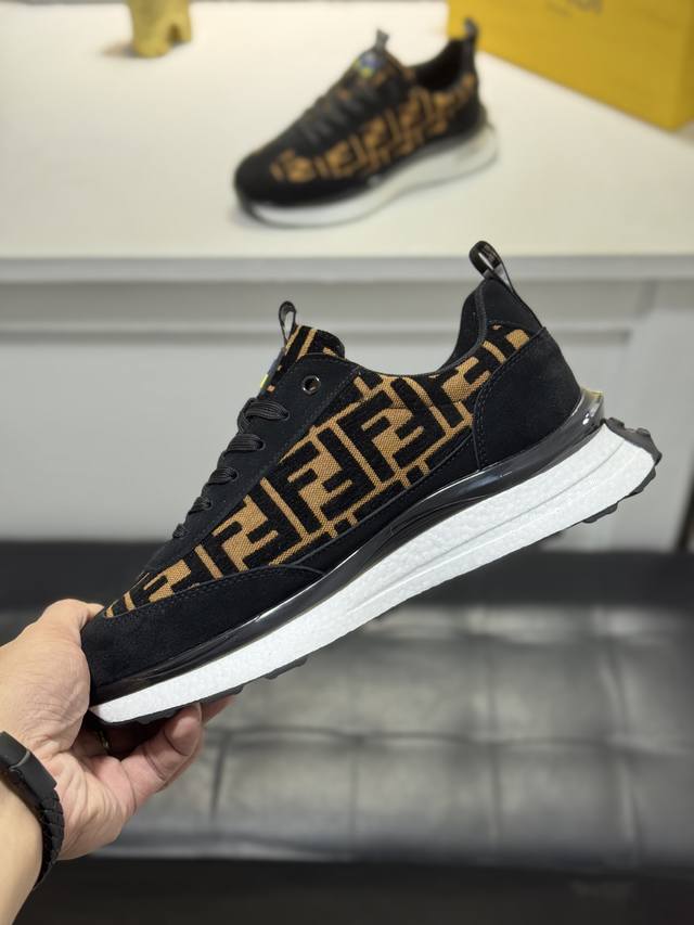 Fendi* Top-tier Fendi men's shoes, new arrival from official boutiques, original factory configuration, Italian imported cowhide leather, mesh lining, hidden wedge heel, original factory sole for super comfort, high-quality original factory order, 3 colors available, can be freely passed off as a genuine Fendi product. Welcome to compare. Size: 38-44, 45 (custom sizes available).