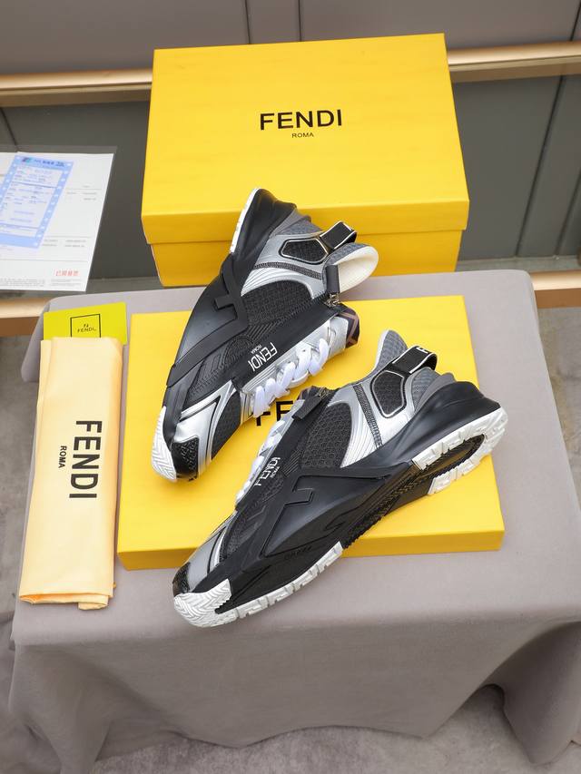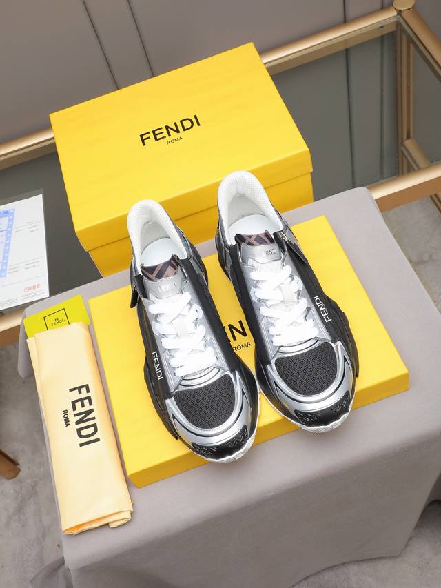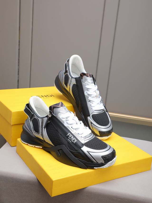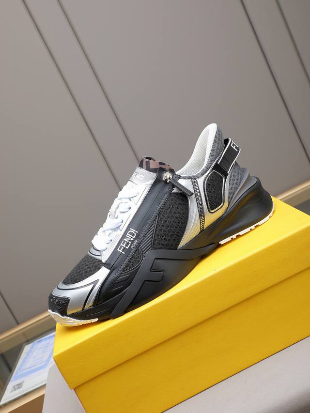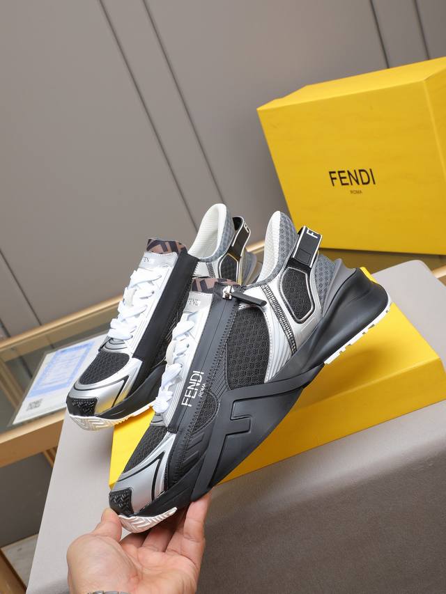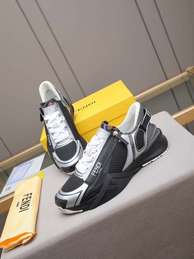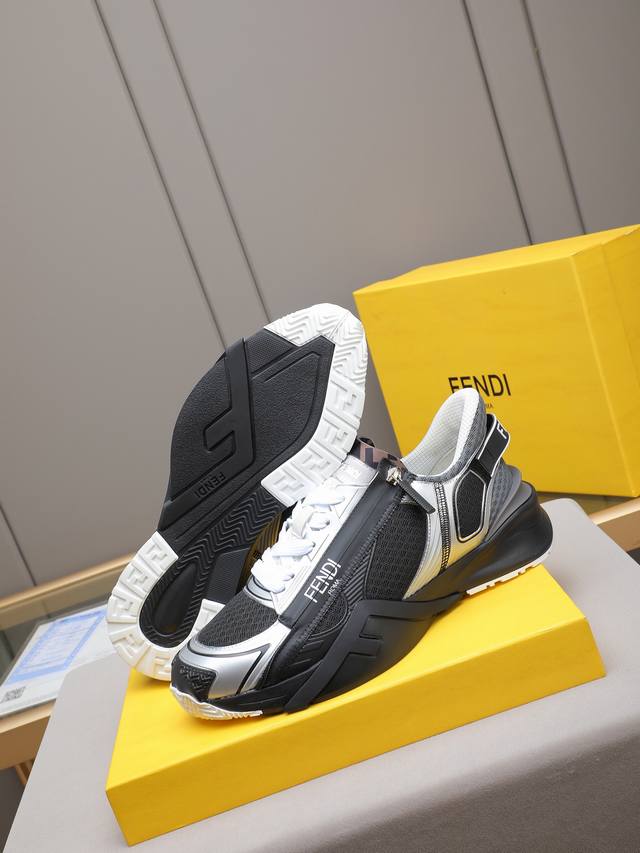 New Fd casual athletic shoes, featuring a wavy sole engraved with the letter F. The heel is adorned with an embossed Fend* Flow logo. The upper is uniquely and innovatively pieced together with cowhide! The ultra-lightweight and durable EVA sole ensures overall comfort and lightness! Sizes: 39-44, 38, 45, 46 (Custom sizes available).