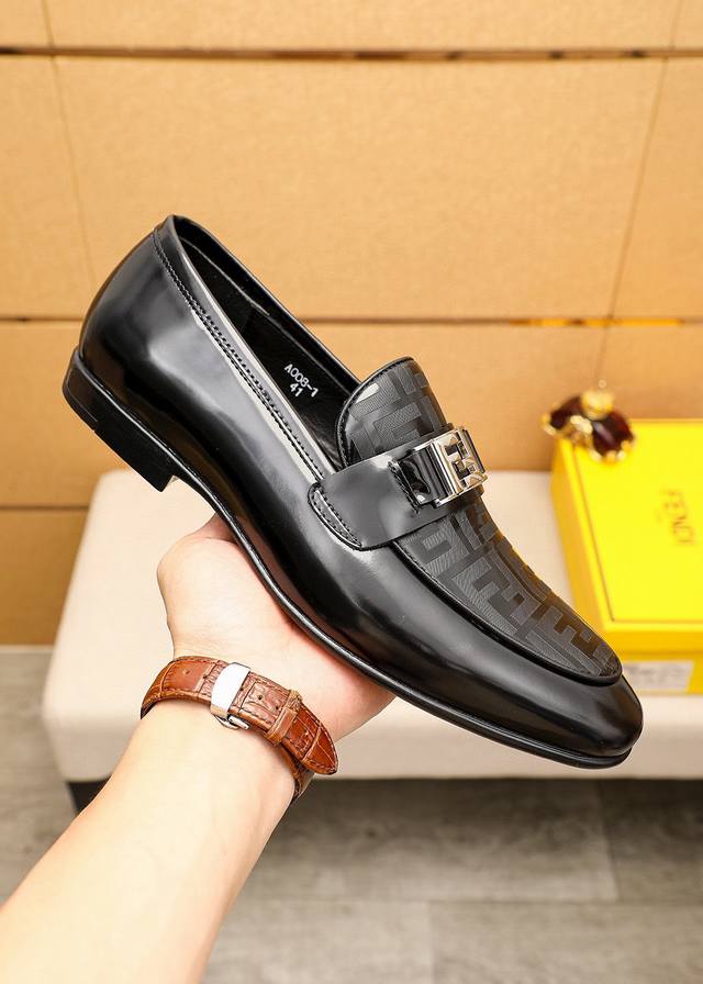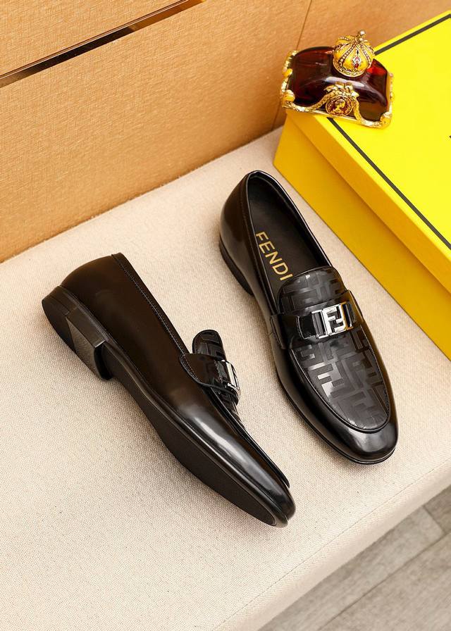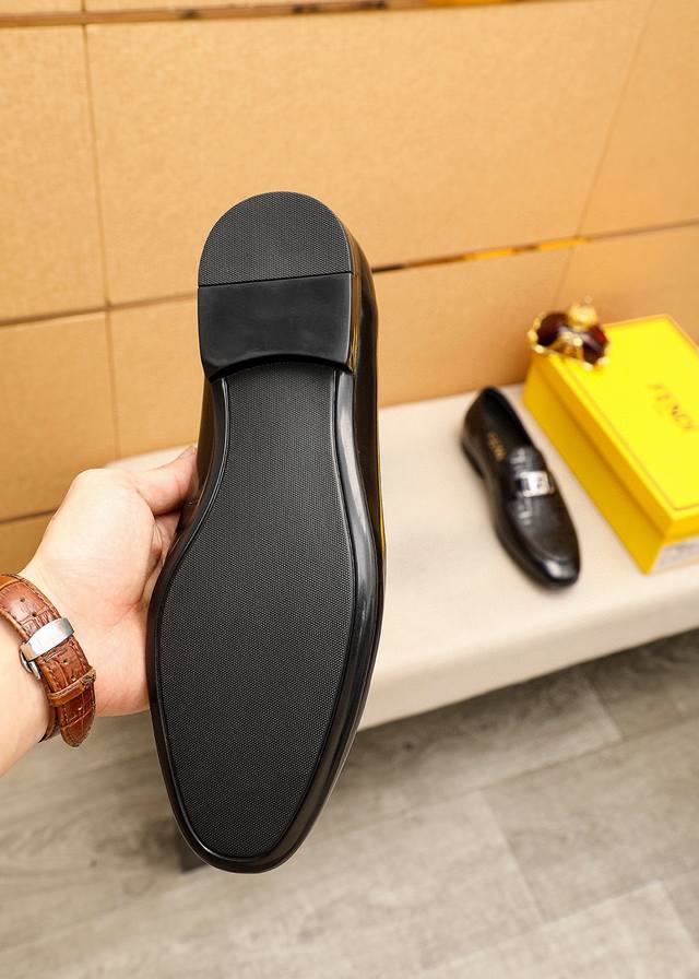 Product Trademark: Fendi Casual Leather Shoes True to Size: 38-44, 45 (Custom Sizes Available) Materials: Selected imported top-grain patent leather laser-cut upper + luxurious hardware buckles, imported cowhide lining. Strong three-dimensional visual effect, rubber outsole. Colors: 1 color available.