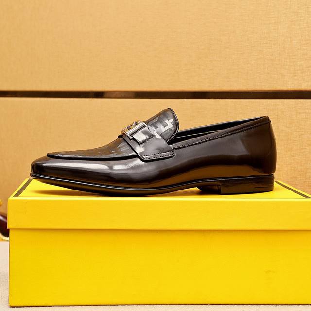 Product Trademark: Fendi Casual Leather Shoes True to Size: 38-44, 45 (Custom Sizes Available) Materials: Selected imported top-grain patent leather laser-cut upper + luxurious hardware buckles, imported cowhide lining. Strong three-dimensional visual effect, rubber outsole. Colors: 1 color available.