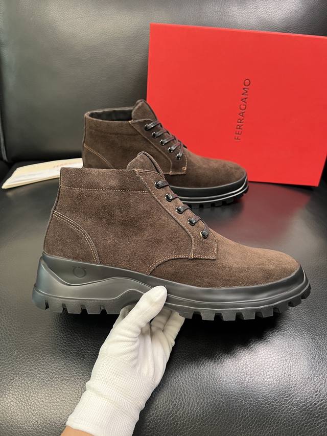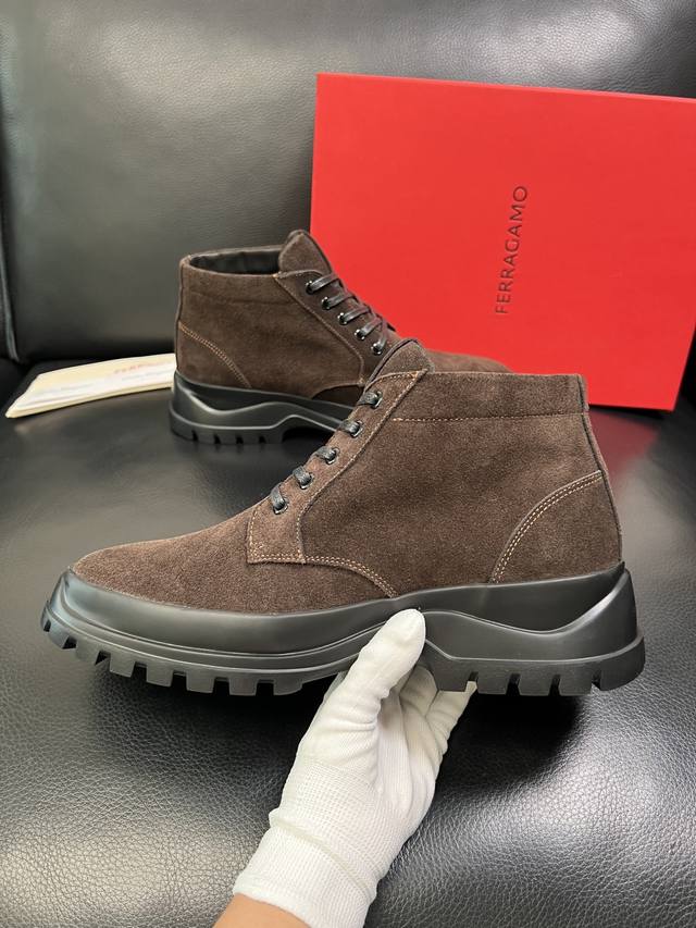 Ferragamo High-Quality Craftsmanship Ferragamo High-Top Boots, Sold Simultaneously with Boutique Stores, Original Factory Configuration, Italian Imported Original Cowhide Leather, Imported Water-Dyed Cowhide Lining, Sole: Original Factory Sole for Super Comfort, Original Factory Order, Welcome to Compare with Boutique Store Quality, Sizes 39-44, Custom Made 38, 45, 46 DDD