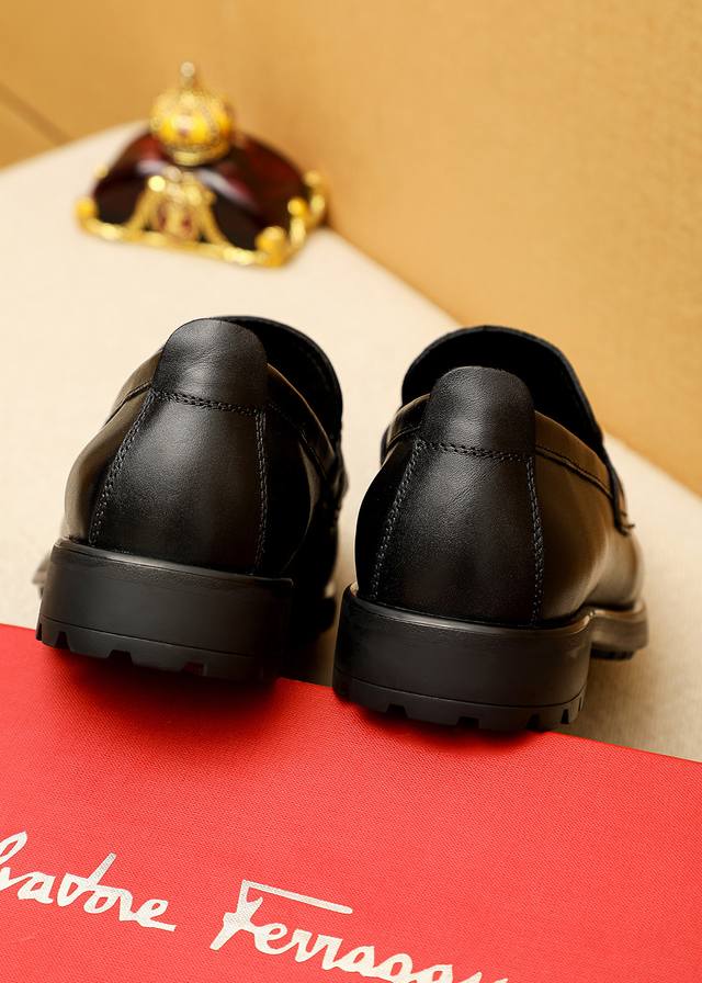 Product Brand: Ferragamo Casual Leather Shoes True to Size: 38-44, 45 (Custom Made) Materials: Selected imported top-grain calfskin upper + luxurious hardware buckles, imported water-dyed cowhide lining. Strong three-dimensional visual effect, original outsole. Colors: 1 color available.