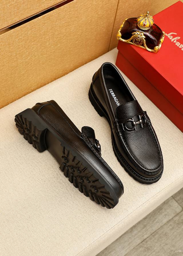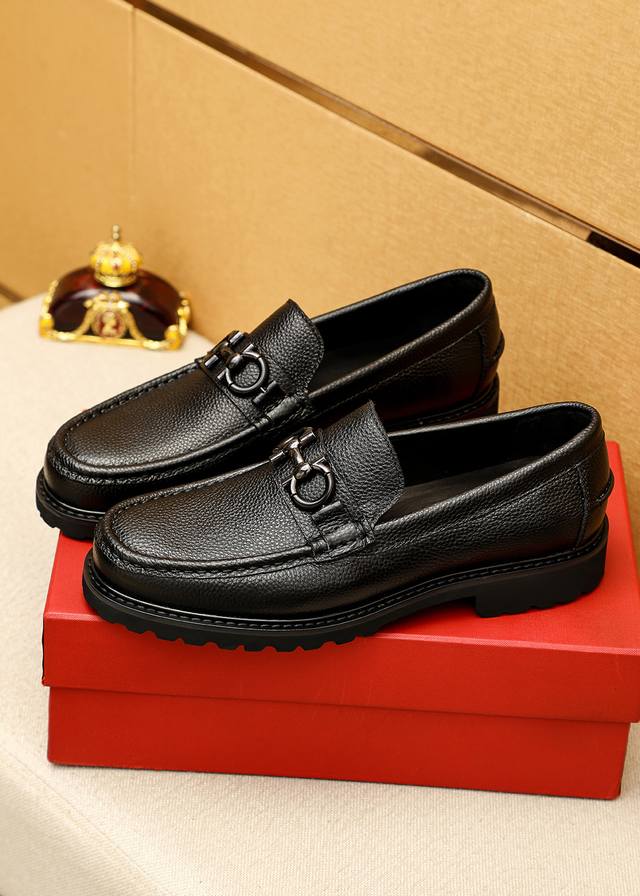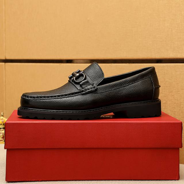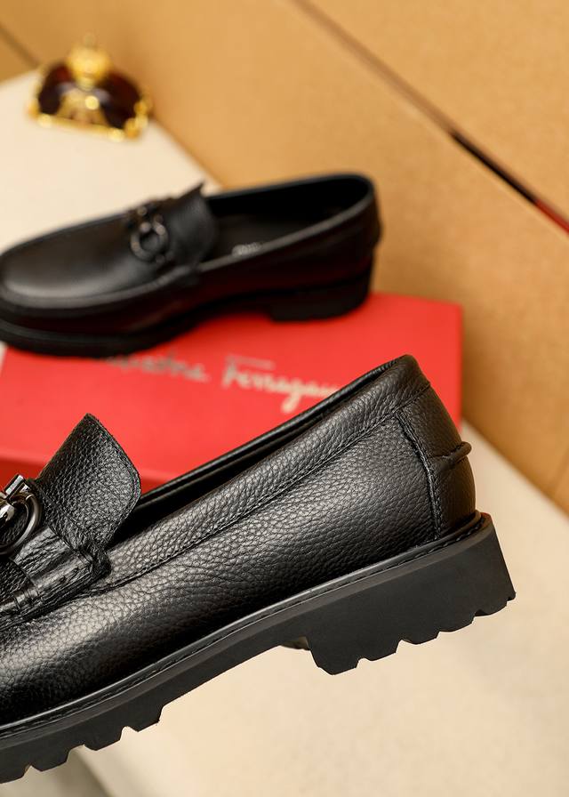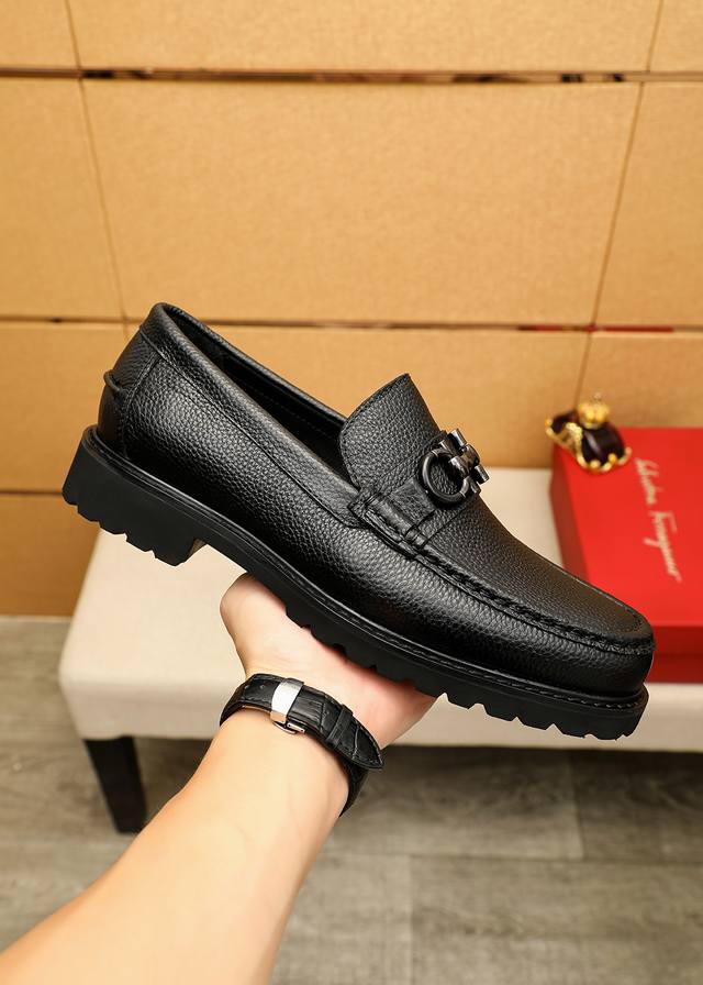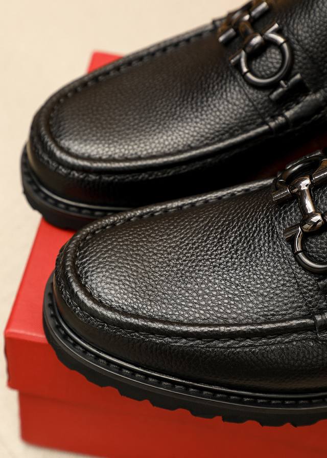 Product Trademark: Ferragamo Casual Leather Shoes DDD True Sizes: 38-44, 45, 46 (Custom Made) DDD Product Materials: Selected imported lychee-patterned cowhide upper + classic hardware buckles, imported water-dyed cowhide lining. Strong three-dimensional visual effect, original outsole DDD Colors: 7 colors available DDD