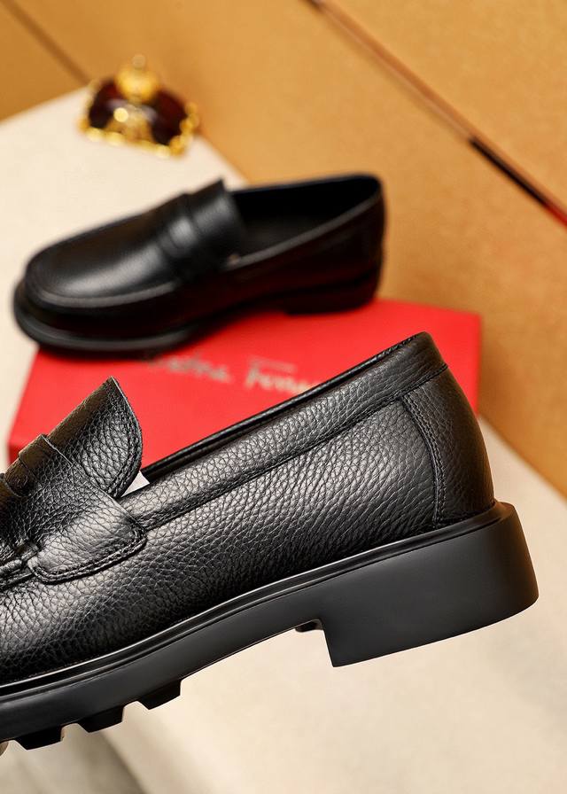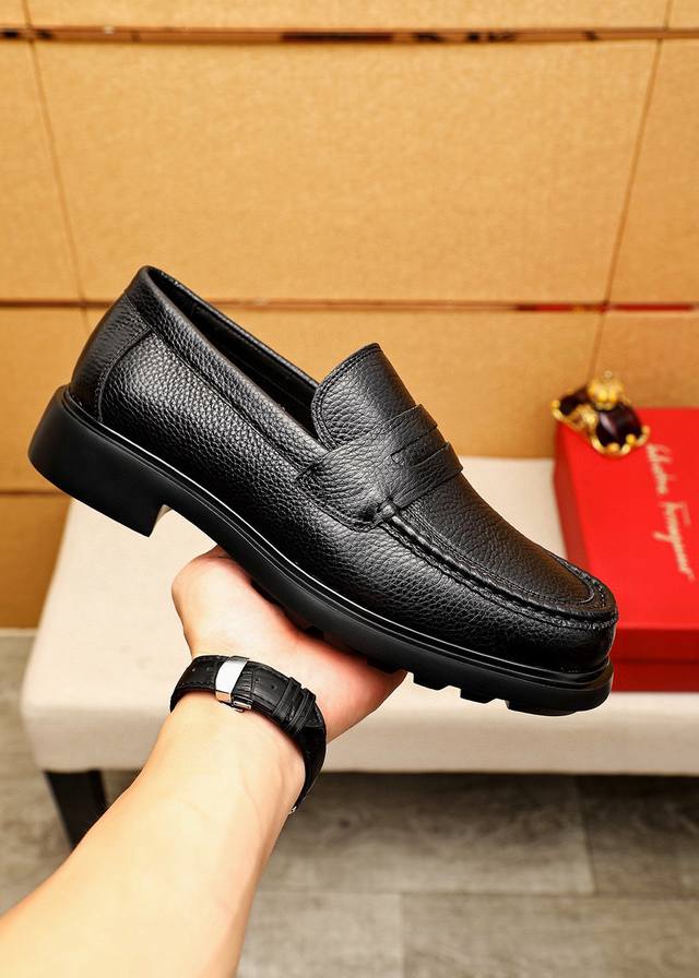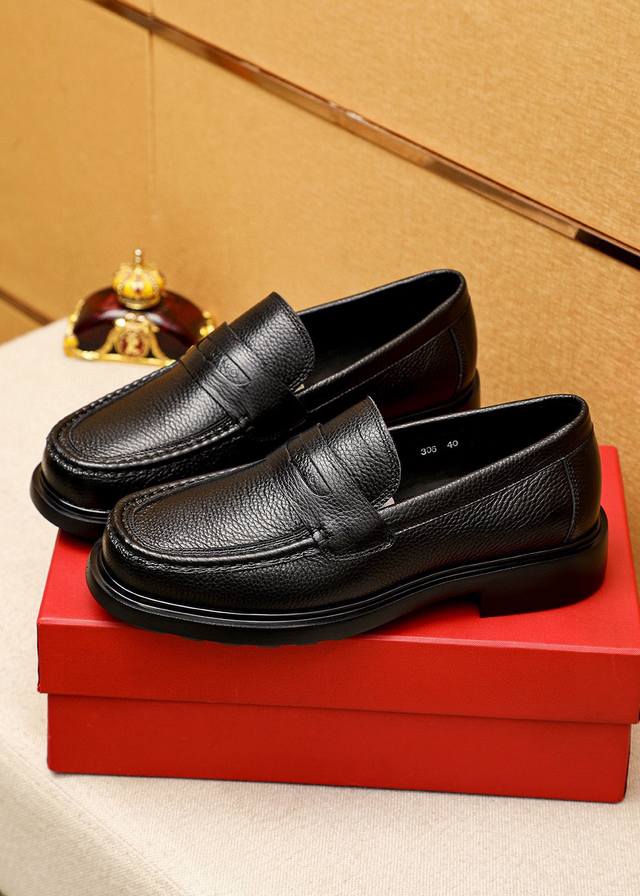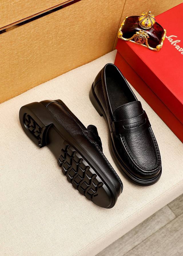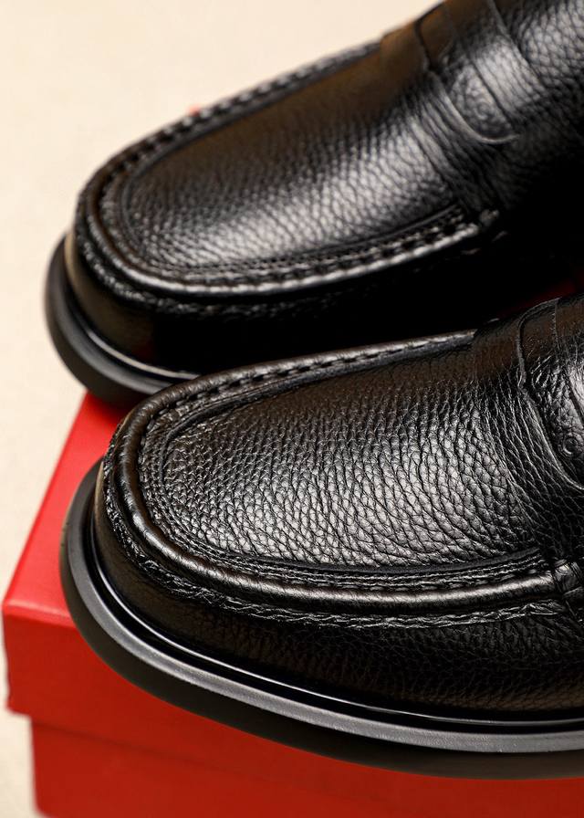 Product Trademark: Ferragamo Casual Leather Shoes DDD True to Size: 38-44, 45-46 (Custom Made) DDD Product Materials: Selected imported top-grain lychee-textured calfskin upper, imported water-dyed cowhide lining. Strong three-dimensional visual effect, original foam outsole DDD Colors: 3 colors available DDD