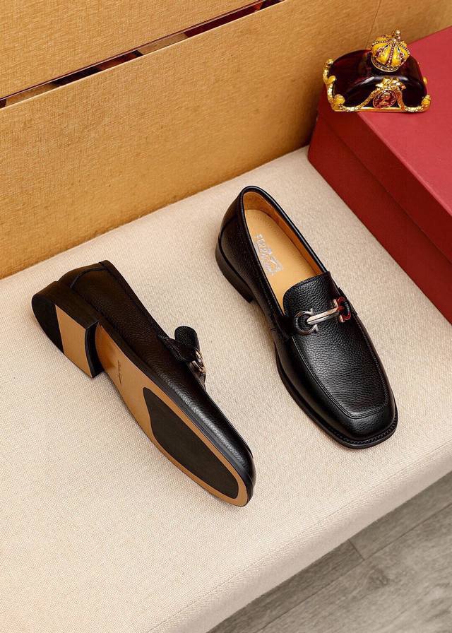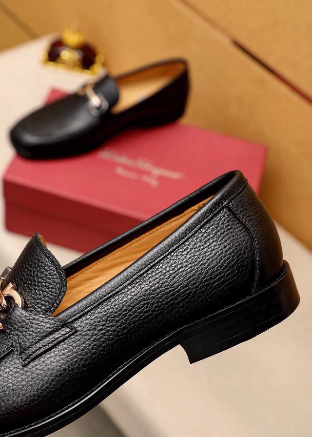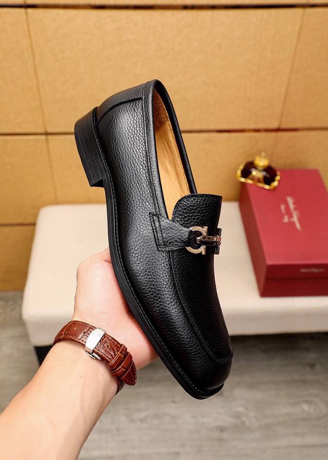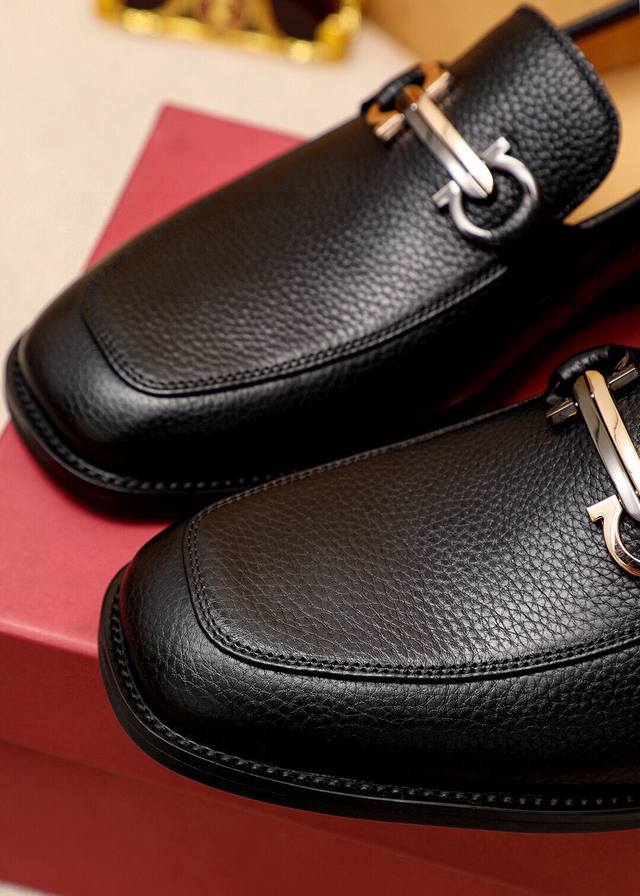 Product Trademark: Ferragamo Fashion Casual Leather Shoes DDD True to Size: 38-44, 45 (Custom Made) DDD Product Materials: Selected imported top-grain lychee-textured calfskin upper + classic hardware buckles, imported water-dyed cowhide lining. Strong three-dimensional visual effect, original combination outsole DDD Colors: 2 colors available DDD