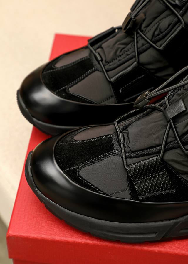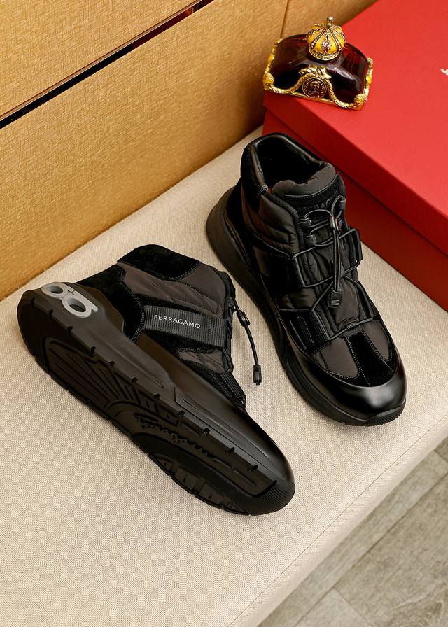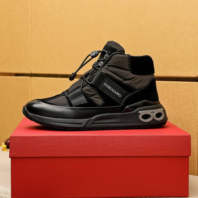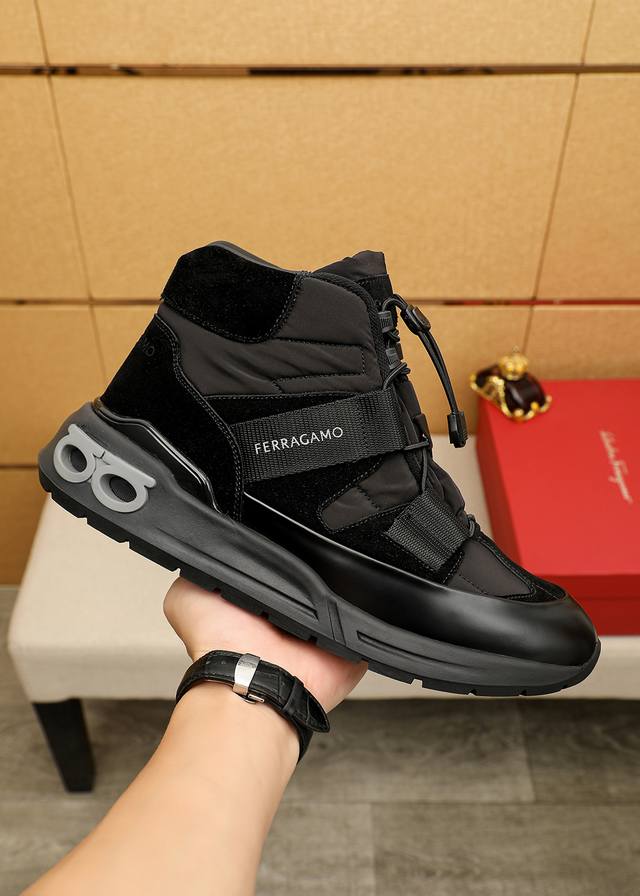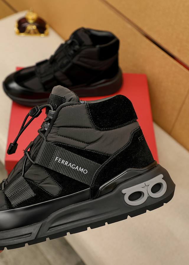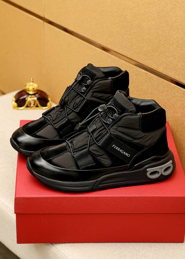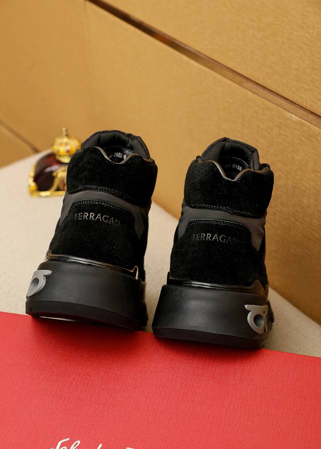 Product Trademark: Ferragamo High-Top Casual Shoes DDD True Sizes: 38-44, 45, 46 (Custom Made) DDD Product Materials: Selected nubuck leather upper with fabric trim, leather lining, original outsole DDD Colors: 5 colors available DDD