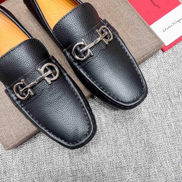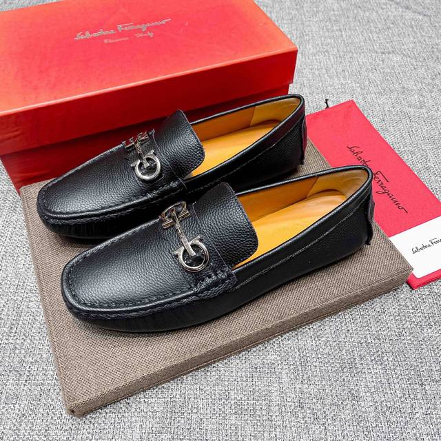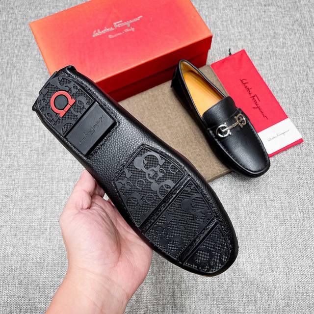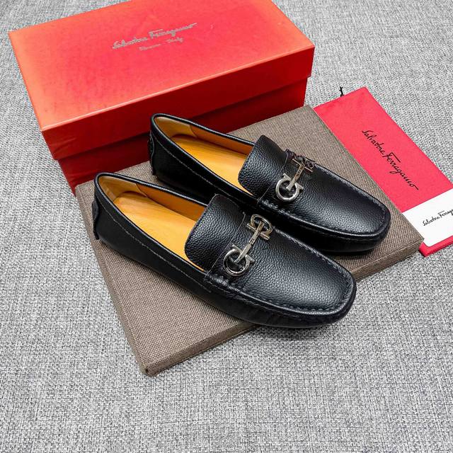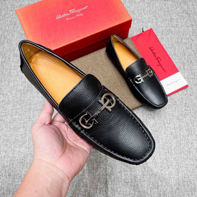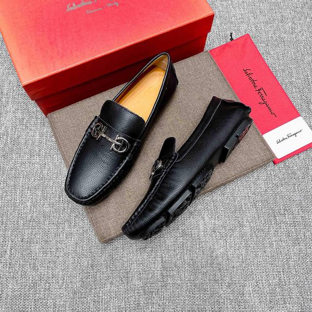 Brand: Ferragamo. Official website original version, casual, versatile, high-end business loafers. Original stock from the official flagship store for all seasons. Upper: imported original cowhide leather, pure cowhide lining. Stylish, easy-to-wear business design, casual loafer style, perfect for young people. British style trendy boots with original raw rubber durable outsole, absolutely high-end and classy. A must-have for trendy men, especially drivers. You deserve it. Standard sizes 37-47.