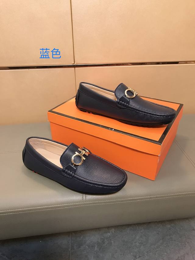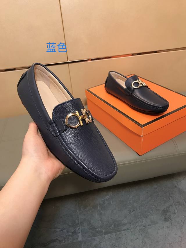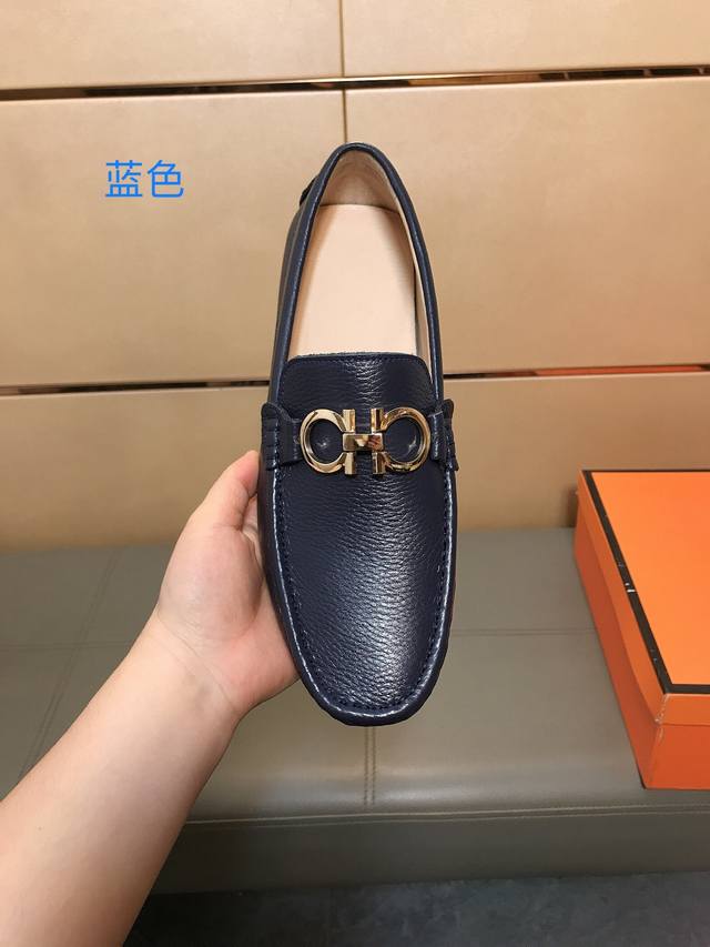 Factory direct price Ferragamo men's casual loafers, brand new style, made with imported Italian lychee cowhide, water-dyed sheepskin lining, durable rubber outsole, trendy men's custom-made, versatile style, sizes 38-44 DDD