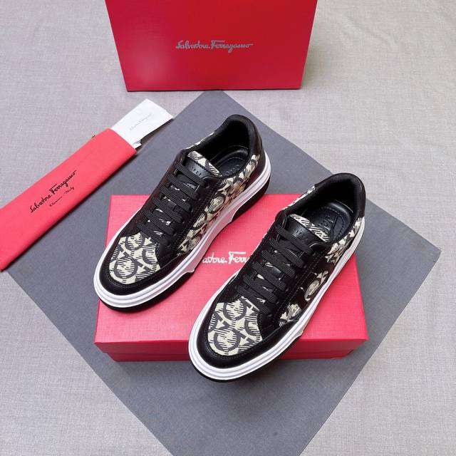 Factory direct price men's shoes, sportswear, original Ferragamo men's Gancini silhouette low-top casual shoes. These low-top casual shoes are made of suede and calfskin leather. Inspired by 90s basketball shoe style, the Gancini side trim adds a touch of classic style. They feature a lightweight rubber sole with knurled edges and custom grooves. The fabric lining and insole provide lightweight comfort, a stylish and dynamic look, and a comfortable, high-end feel. Size: 38-45 Item No. 004