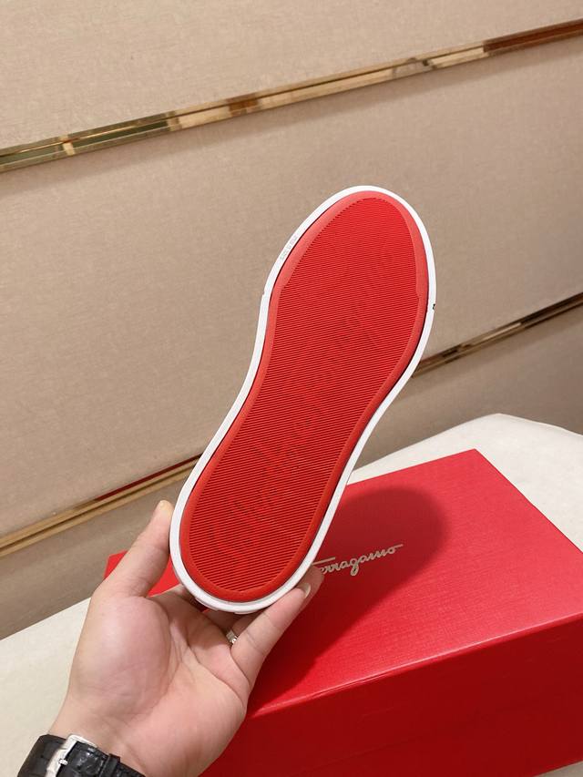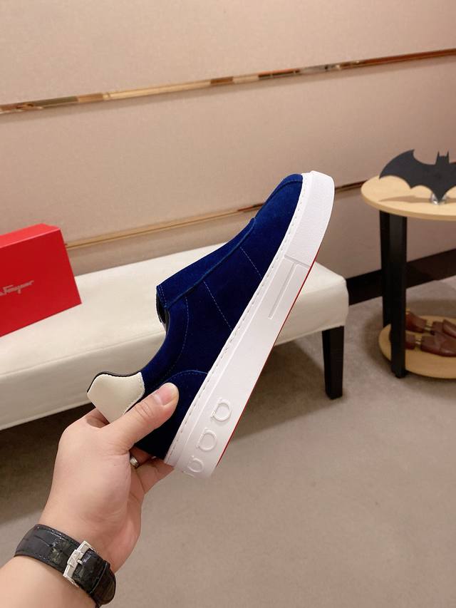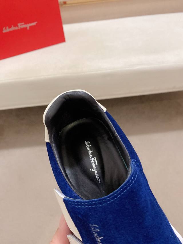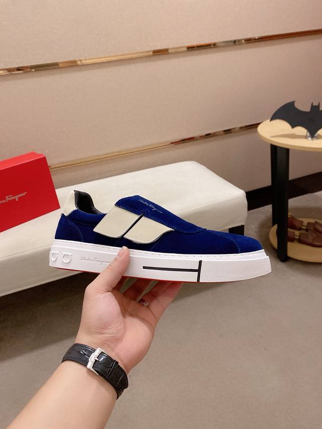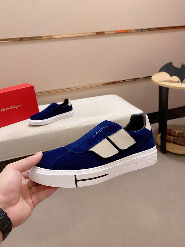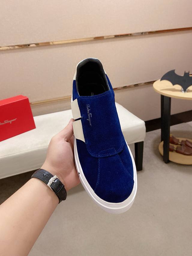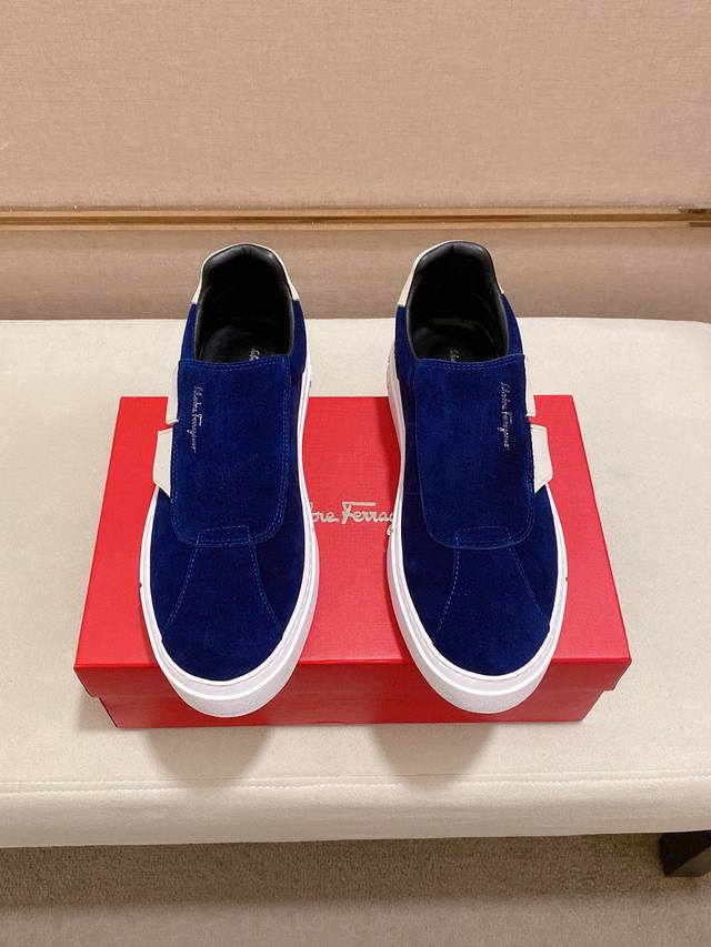Factory direct price men's sports shoes, original Ferragamo new style, men's skateboard shoes, synchronized style. The upper is made of imported grained cowhide, featuring the latest brand elements, G brand hardware pull tabs. The Ferragamo official website's latest design exudes a sophisticated feel. The simple slip-on style is super versatile. The inner lining is top-grain sheepskin. Original rubber sole. Sizes 38-44. Size 45 is custom-made and non-refundable.