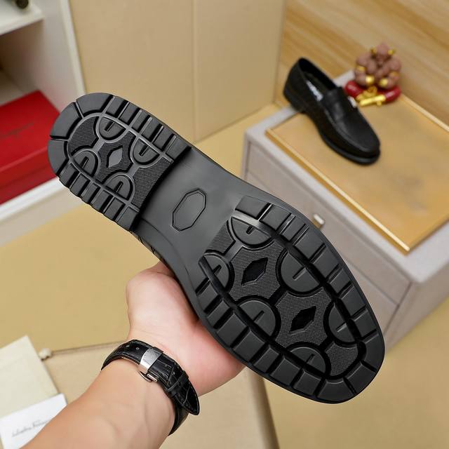 Factory direct price men's sportswear and athletic shoes, original Ferragamo [Ferragamo] top-grade imported men's suits and shoes, official website original replica. Materials: Selected imported embossed calfskin + luxurious hardware accessories ~ imported water-dyed cowhide lining. Strong three-dimensional visual effect, original combination sole, multiple colors available. Sizes: 38-44, 45, 46. Custom-made.