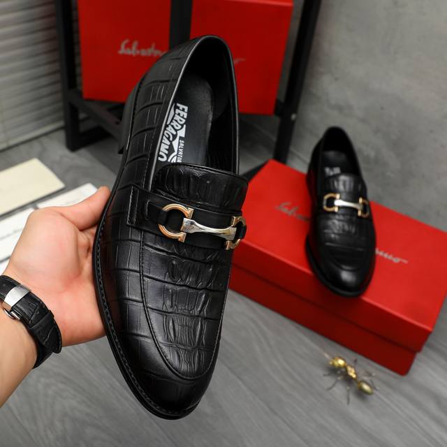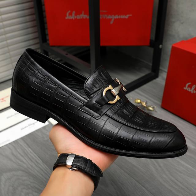 Factory direct price product trademark: Ferragamo] Business slip-on leather shoes Ddd True to size: 39-45 38.46 Custom-made, no returns or exchanges Ddd Product materials: Selected stone-patterned cowhide upper, sheepskin lining, original rubber outsole DDD
