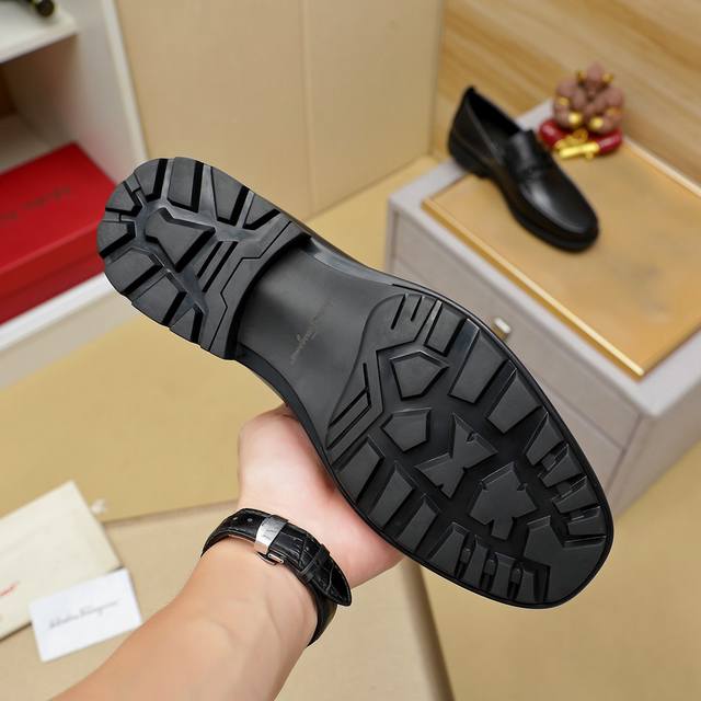 Factory direct price women's sports shoes, original Ferragamo new leather shoes, official website original 1:1 mold, original quality, exquisite workmanship, high-end luxury upper made of imported Italian top layer cowhide water-dyed leather, rubber lining, wear-resistant and non-slip outsole, breathable and comfortable to wear, the first choice for high-class men, black, sizes 38-45.