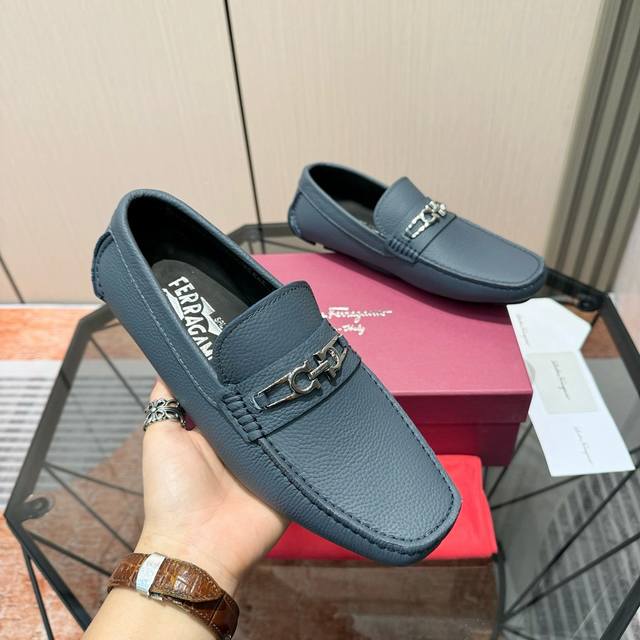 Factory Price: Exclusive new style of Ferragamo loafers. The upper is made of top-quality imported calf, with a delicate, luxurious feel, tailor-made for sophisticated men, creating a noble aura. Fine, smooth lines and cowhide lining. Sizes: 38-44, 45. Custom orders accepted. Outdoor driving shoes for experienced drivers.