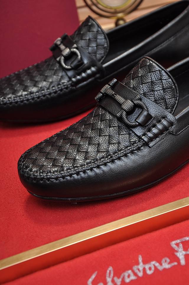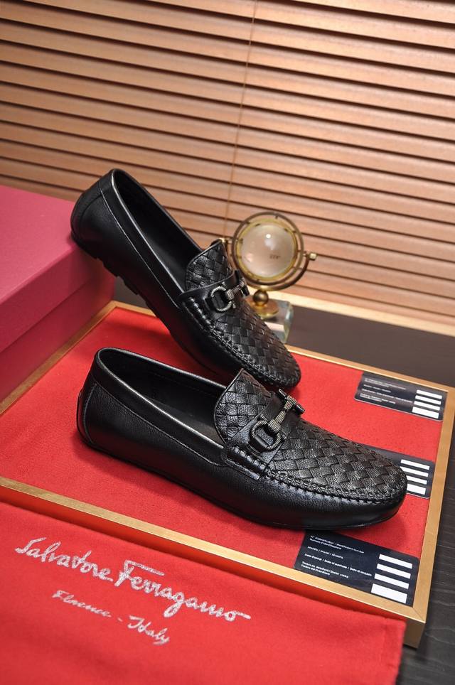 Factory Price Ferragamo, latest model from official Ferragamo boutique, original imported split-edge premium cowhide hand-woven + imported cowhide lining + original luxury metal buckle + original combination outsole, no pressure for comparison, size 38-44.