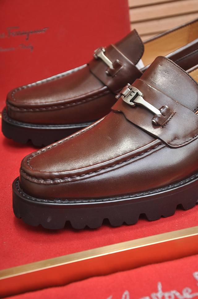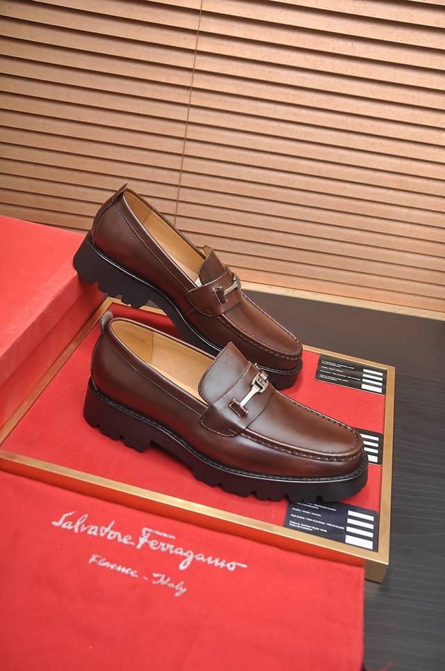 Factory Price Ferragamo, latest model from official stores, original imported split-edge premium cowhide + imported water-dyed cowhide lining + original luxury metal buckle + original combination outsole, no pressure difference. Sizes 38-45. 45 custom-made, no returns or exchanges.