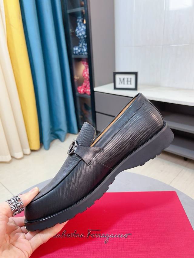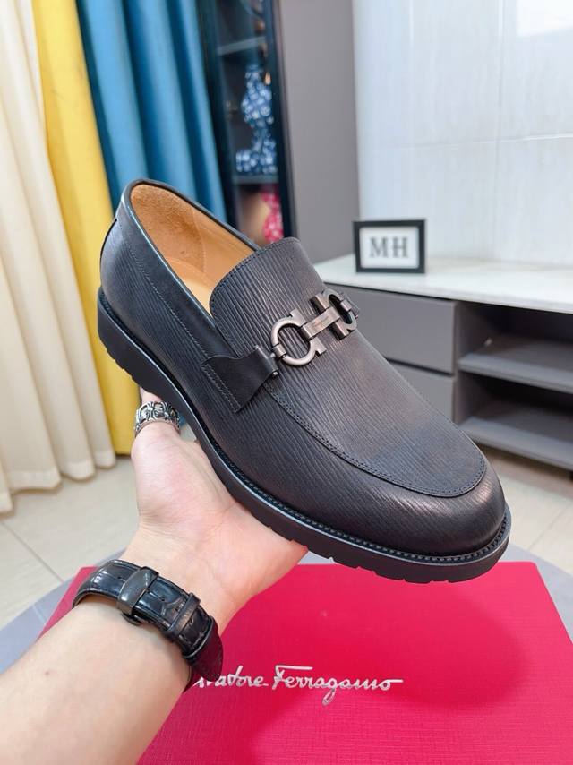 Factory Price p Ferragamo original single shoe upper replica, even more original single goods, super domineering upper made of high-quality cowhide leather, formal business leather shoes, all genuine leather inside and out, cowhide lining will not fade or rub feet, simple and generous, super versatile upper piece is carefully designed by hand, original single replica, super cool slip-on shoes, high-quality sneakers, men's shoe sizes: 38-44 DDD