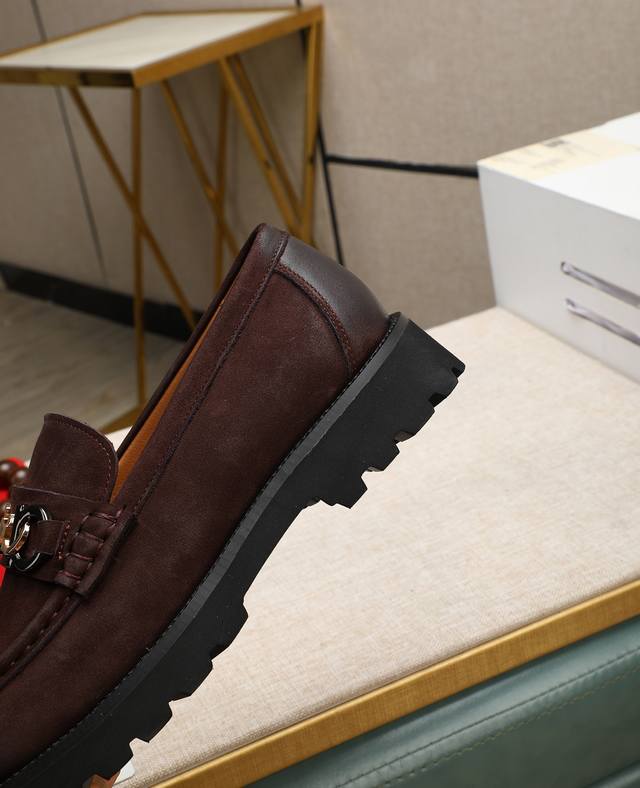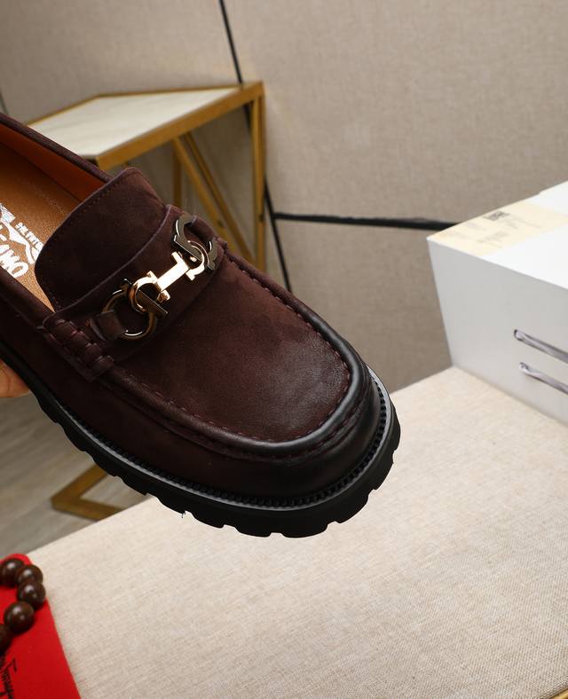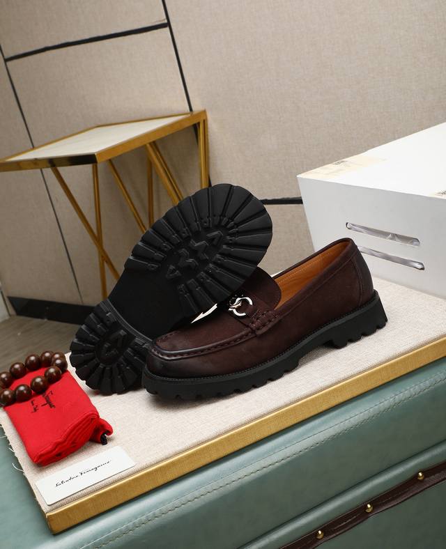 Factory Price P Salvatore Ferragamo is a top international luxury footwear brand from the fashion kingdom of Italy, renowned worldwide for its traditional handcrafted designs and innovative styles. This new style of suit shoes is released simultaneously in boutiques. It features pure handcrafted construction, imported Italian calfskin leather, soft water-dyed leather lining, original label, and outsole. Size: 3844.