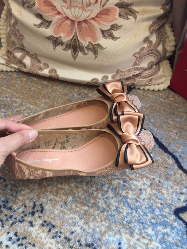 Ferragamo Same Style Upgraded Lace Top Version French Imported Eco-friendly Top Grade Sheepskin, Super Perfect! Better Quality! Its timeless classic symbol, soft sheepskin lettering plus original hardware and rhinestones, really comfortable to wear, exquisite design, can you resist its temptation! Fashionable dance shoes that can be folded up, you deserve to own them! Comes with a strap bag for easy carrying! Must-have for women, bulk stock sold out, pink, black, and burgundy available---Sizes: 35-40 41 Customization available