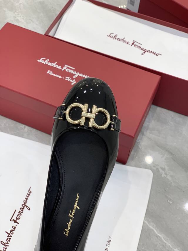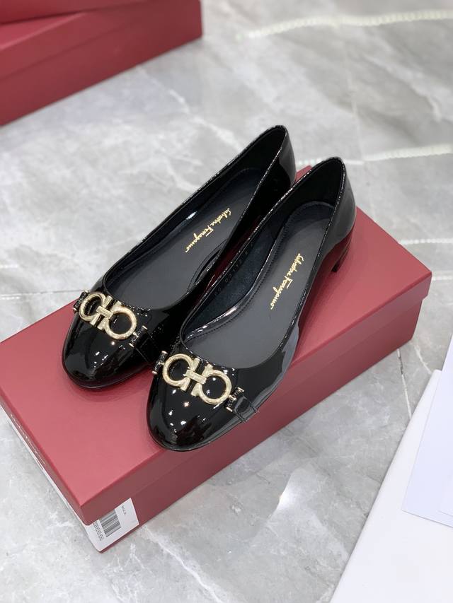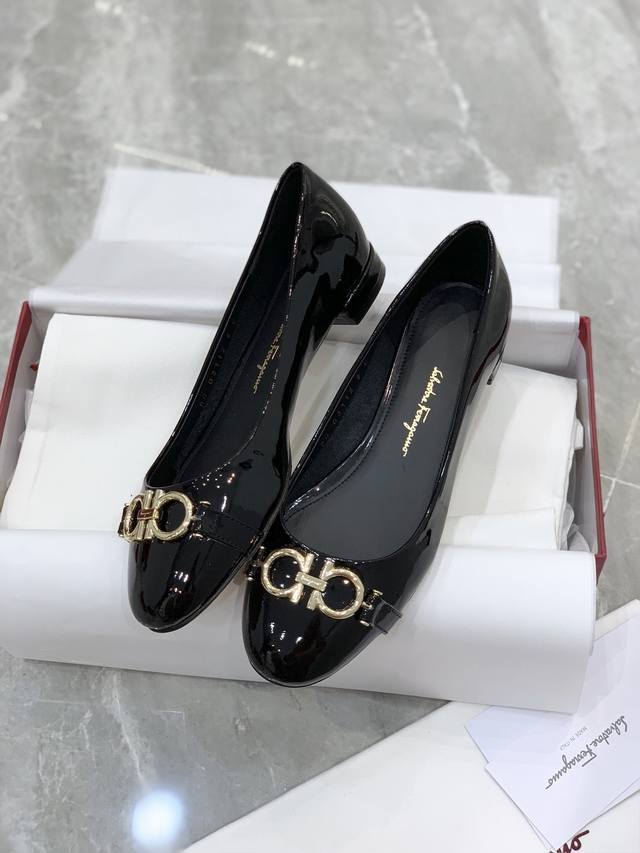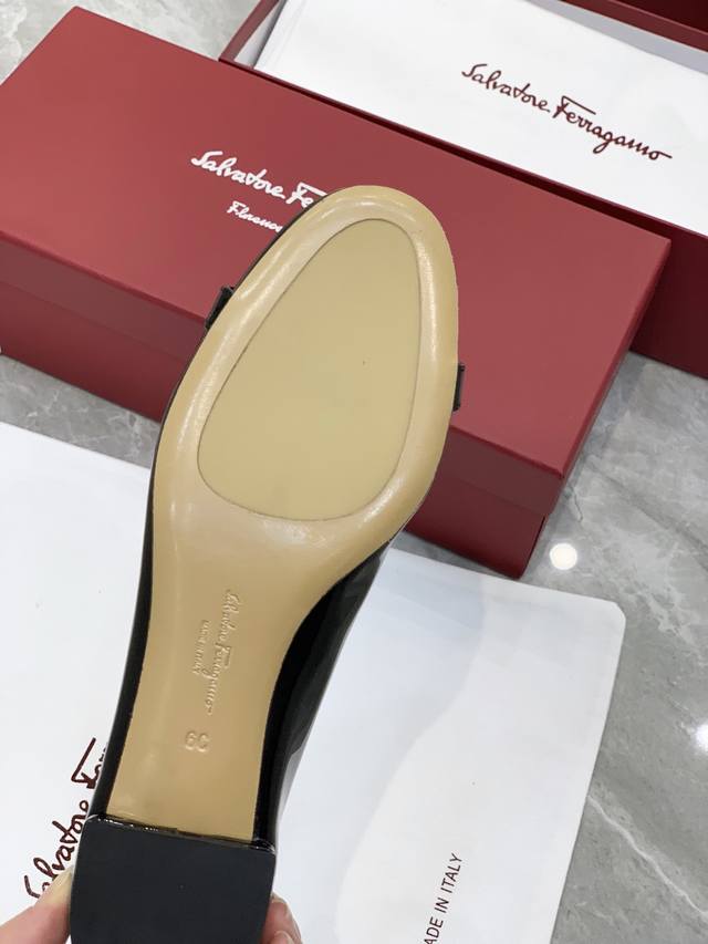 Factory price Ddd Sf Ferraga*O New round toe horseshoe buckle chunky heel flat shoes, purchased at Taikoo Hui for 5000+ RMB. The original Gancini horseshoe buckle is arguably Ferraga's signature design. The half-lining is soft and comfortable. Compared to the classic bow, it's less sweet but more sophisticated and elegant, making it a must-have in every woman's wardrobe. Ddd Material: Imported cow patent leather Ddd Lining: Half-lining sheepskin Ddd Outsole: Non-slip rubber spliced genuine leather outsole Ddd Sizes: 34 35 36 37 38 39 40, half sizes 34 and 40 are available; custom orders are non-refundable and non-exchangeable Ddd Heel height: 2.0cm 5.5cm DDD